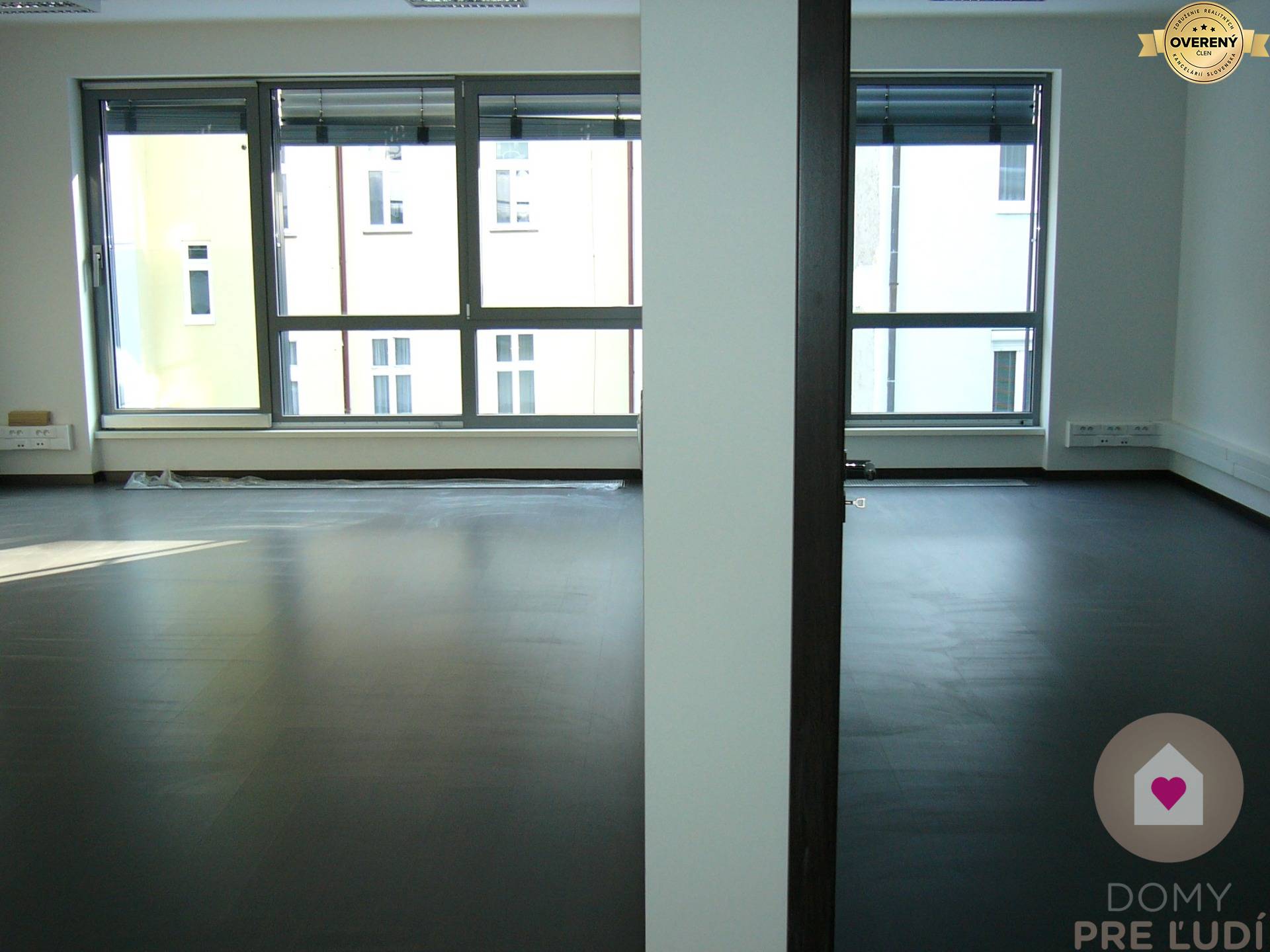 Kancelársky celok s výmerou 64 m² pozostáva z dvoch samostatných kancelárií, toalety a kúpeľne. Priestory sú klimatizované, na oknách sú moderné žalúzie s elektrickým ovládaním. Samozrejmosťou je pripravená kabeláž, požiarny systém a videovrátnik, čo zabezpečuje komfort aj bezpečnosť pri každodennej práci.
