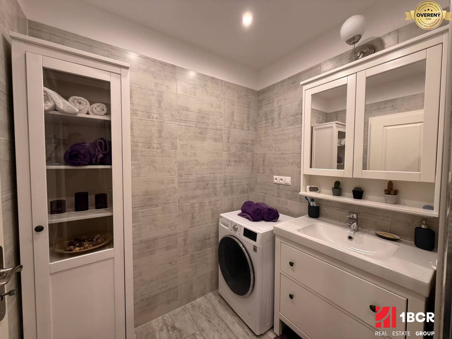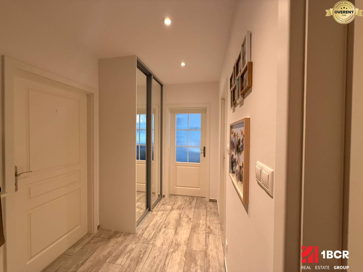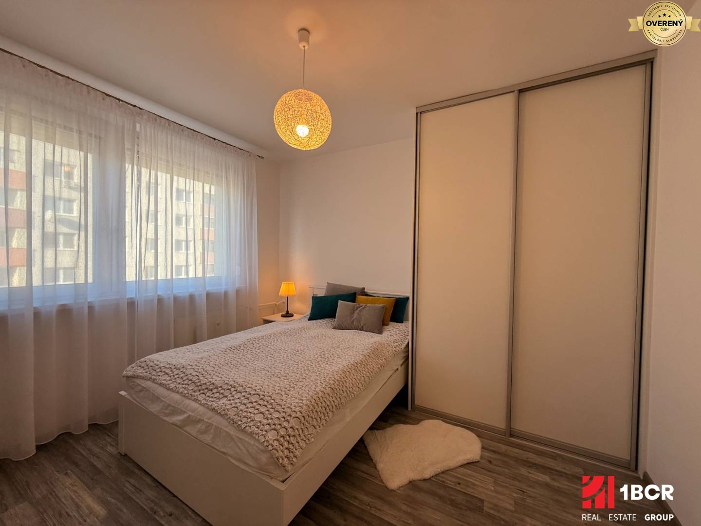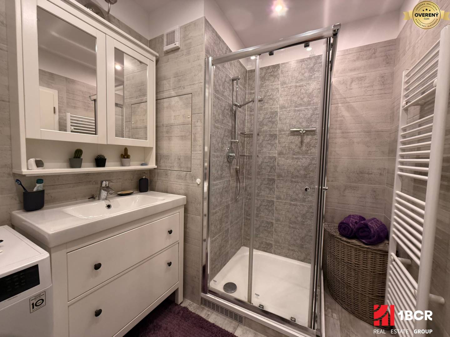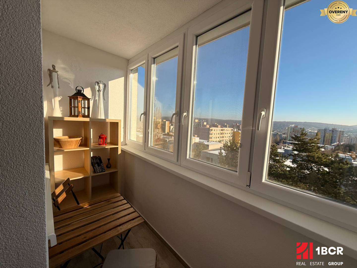 Samotný byt je premyslene riešený tak, aby poskytoval maximálne pohodlie a veľmi príjemnú atmosféru. Úvodom vás privíta priestranná chodba vybavená elegantnou presklenou roldor skriňou s dostatkom úložného priestoru. Súčasťou vstupnej časti je aj samostatné WC a kúpeľňa so sprchovým kútom. Po ľavej strane sa nachádza hosťovská izba, ktorá môže slúžiť ako pracovňa či detská izba. Disponuje vstavanou skriňou a pôsobí svetlo a vzdušne. Srdcom bytu je krásna obývacia izba s veľkou rohovou sedačkou a štýlovým zaveseným húpacím kreslom, ktoré dotvára útulnú a relaxačnú atmosféru. Priestor je ladený v jemných farbách a vďaka veľkému oknu pôsobí svetlo a veľmi harmonicky. Komfort bývania zvyšuje aj klimatizácia, ktorá spríjemní letné dni. Z obývačky je priamy vstup na lodžiu s pokojným výhľadom, ktorá poskytuje ideálne miesto na rannú kávu či večerný oddych. Z obývacej izby sa vstupuje do kuchyne, ktorá je ladená do nadčasových bielych farieb a pôsobí veľmi elegantne a vzdušne. Ponúka množstvo úložného priestoru, vstavané spotrebiče a praktickú pracovnú plochu. Pri oknách sa nachádza jedálenské sedenie, ktoré vďaka prirodzenému dennému svetlu vytvára mimoriadne príjemný priestor na stolovanie. Z kuchyne je zároveň priamy vstup do hlavnej spálne. Tá pôsobí pokojne, čisto a harmonicky. Je vybavená veľkou posteľou a vstavanou skriňou, ktorá poskytuje dostatok úložného priestoru. Celý byt pôsobí veľmi útulne, svetlo a ponúka premyslené dispozičné riešenie, ktoré zvyšuje komfort bývania.