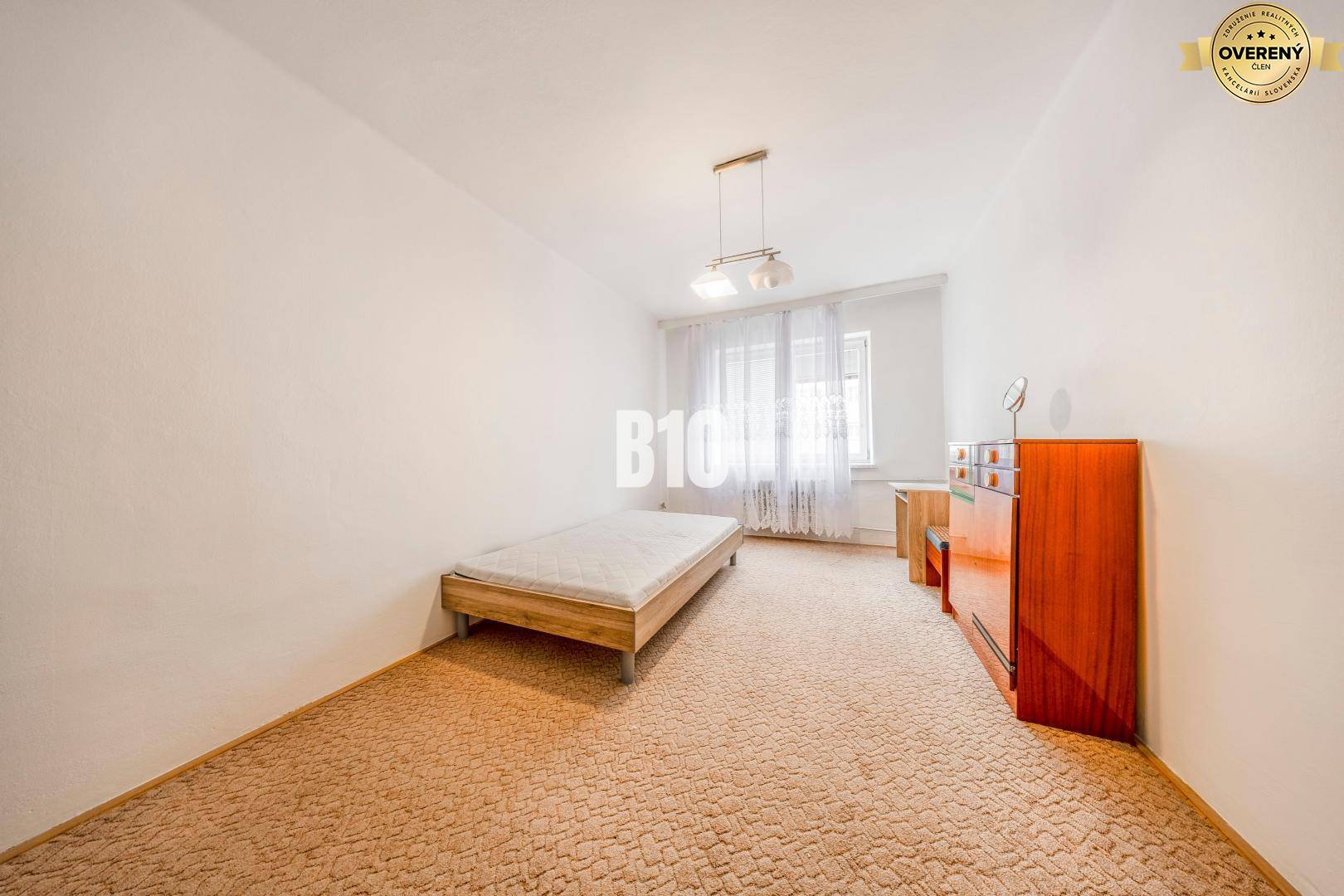 B10 Vám ponúka na predaj priestranný 4i byt s rozlohou 118 m² v tehlovom dome vo vyhľadávanej časti Bratislava–Nové Mesto na ulici Krížna. Ak hľadáte bývanie s dušou, charakterom a širokým potenciálom v centre diania, táto nehnuteľnosť je ideálnou voľbou.Byt sa nachádza na 2. poschodí zatepleného tehlového domu z roku 1958, v ktorom boli pred 3 rokmi kompletne zrekonštruované stúpacie rozvody, elektrické rozvody a disponuje výťahom. K bytu prislúcha pivnica s výmerou cca 4,5 m².Byt si zachoval svoje pôvodné dubové parkety v izbách, ktoré sú vo výbornom stave a dodávajú mu nezameniteľný, elegantný retro štýl. Disponuje novými elektrickými rozvodmi a plastovými oknami Pohodlie v zime zabezpečujú pôvodné liatinové radiátory.Dispozícia bytu je veľkorysá a praktická. Pozostáva zo štyroch izieb, pričom jedna spálňa je priechodná z obývačky a má vlastnú súkromnú kúpeľňu s WC. Byt tak ponúka dve kompletné kúpeľne a praktickú komoru.Hoci sú okná bytu orientované do ulice (v prednej časti je inštalovaná vnútorná žalúzia, v obývačke a zadnej spálni vonkajšie rolety), lokalita ponúka neprekonateľné výhody. Ste priamo v centre s pešou dostupnosťou kamkoľvek a s kompletnou občianskou vybavenosťou.Lokalita a parkovanie: V okolí nájdete kompletnú občiansku vybavenosť, škôlku priamo pri dome a výborné napojenie na MHD. Parkovanie je možné vo dvore vo vnútrobloku alebo využitím PAAS systému na ulici. Bonusom je možnosť prikúpenia garáže na Levickej ulici. Dom má naviac dvor s vlastnou zeleňou.Tento priestranný 4-izbový byt s nadčasovou eleganciou je ako stvorený pre moderný život. Či už ste rastúca rodina hľadajúca dostatok miesta a súkromie pre každého člena, alebo podnikateľský pár, ktorý ocení samostatnú pracovňu a ruch v blízkosti centra, tento byt splní vaše nároky na nadštandardný priestor a kvalitu. Užite si výhody skvelej lokality a pohodlného bývania so všetkým na dosah. V prípade záujmu o obhliadku alebo bližšie informácie ma neváhajte kontaktovať na tel.č. ID: 133418Cena: 460 000€ Aj váš dom, byt alebo pozemok predáme na počkanie #pocelomslovensku