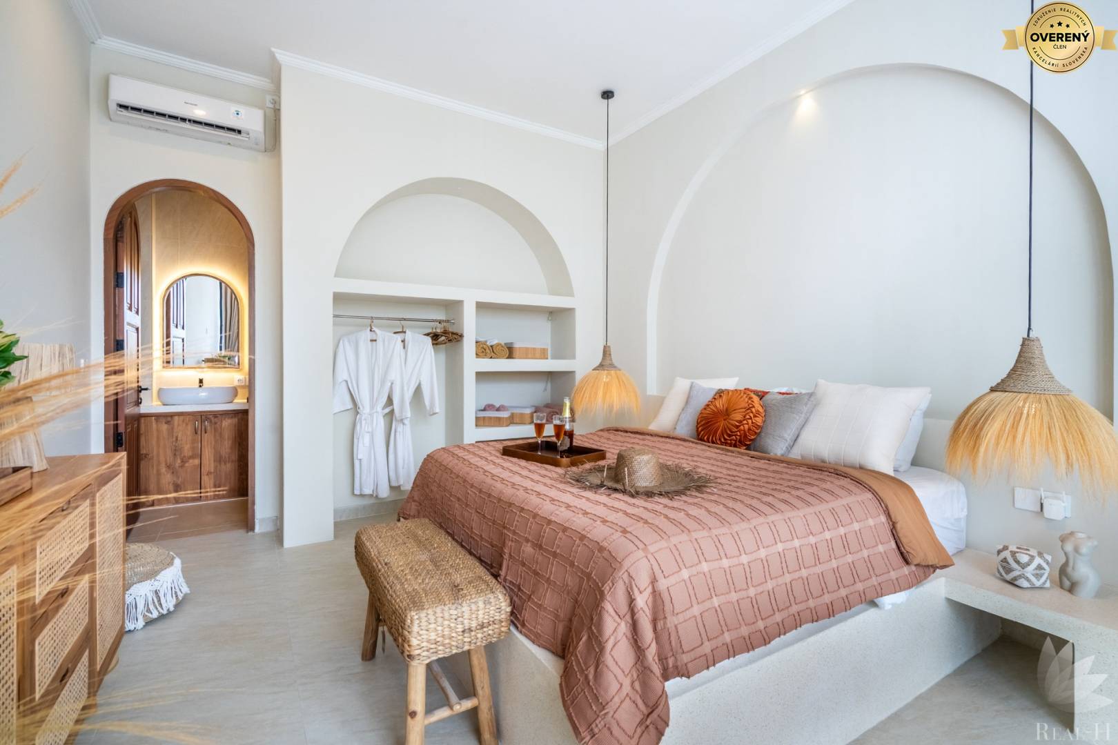 - 2 spálne, každá s vlastnou kúpeľňou a vstupom na terasu