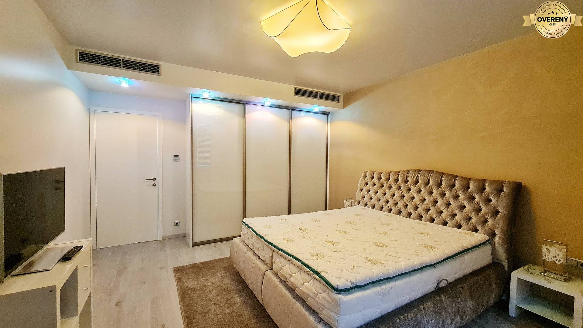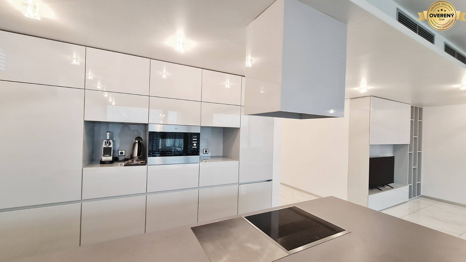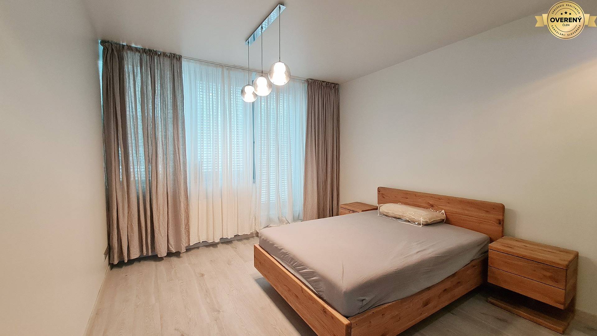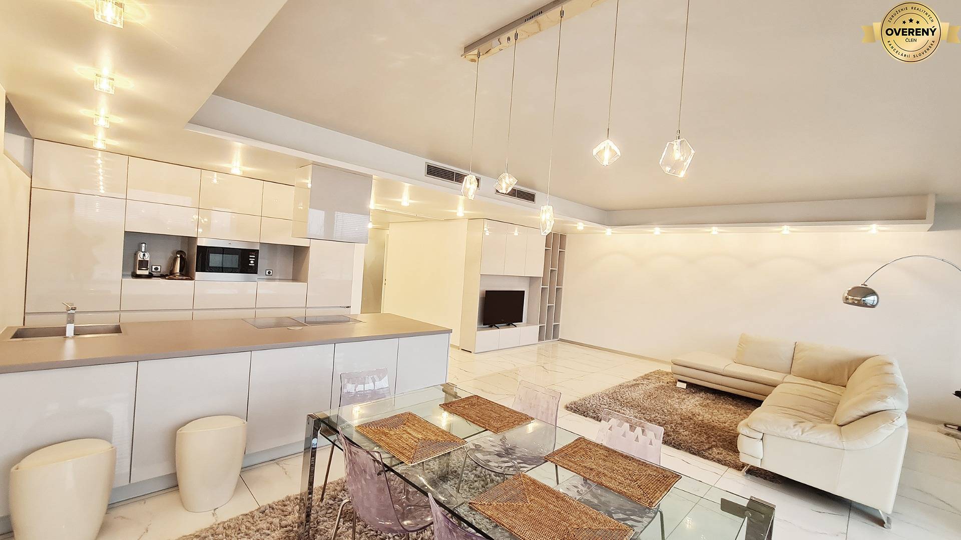 Byt je moderne a vkusne zariadený, vybavený kvalitnými materiálmi a technológiami na vysokej úrovni, ktoré zabezpečujú maximálny komfort každodenného bývania. Veľkoformátové presklenia prinášajú do interiéru dostatok prirodzeného svetla a umocňujú výnimočný charakter priestoru.