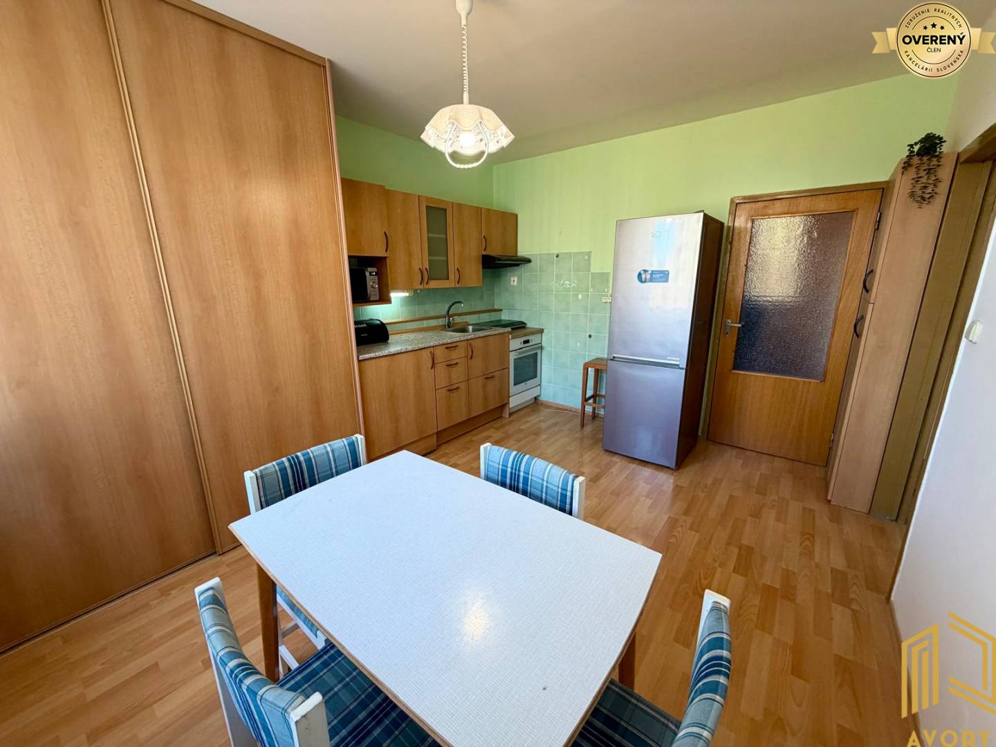 Byt sa predáva so zariadením, ako je na fotografiách – vrátane chladničky, mikrovlnky, práčky, kuchynských skriniek.