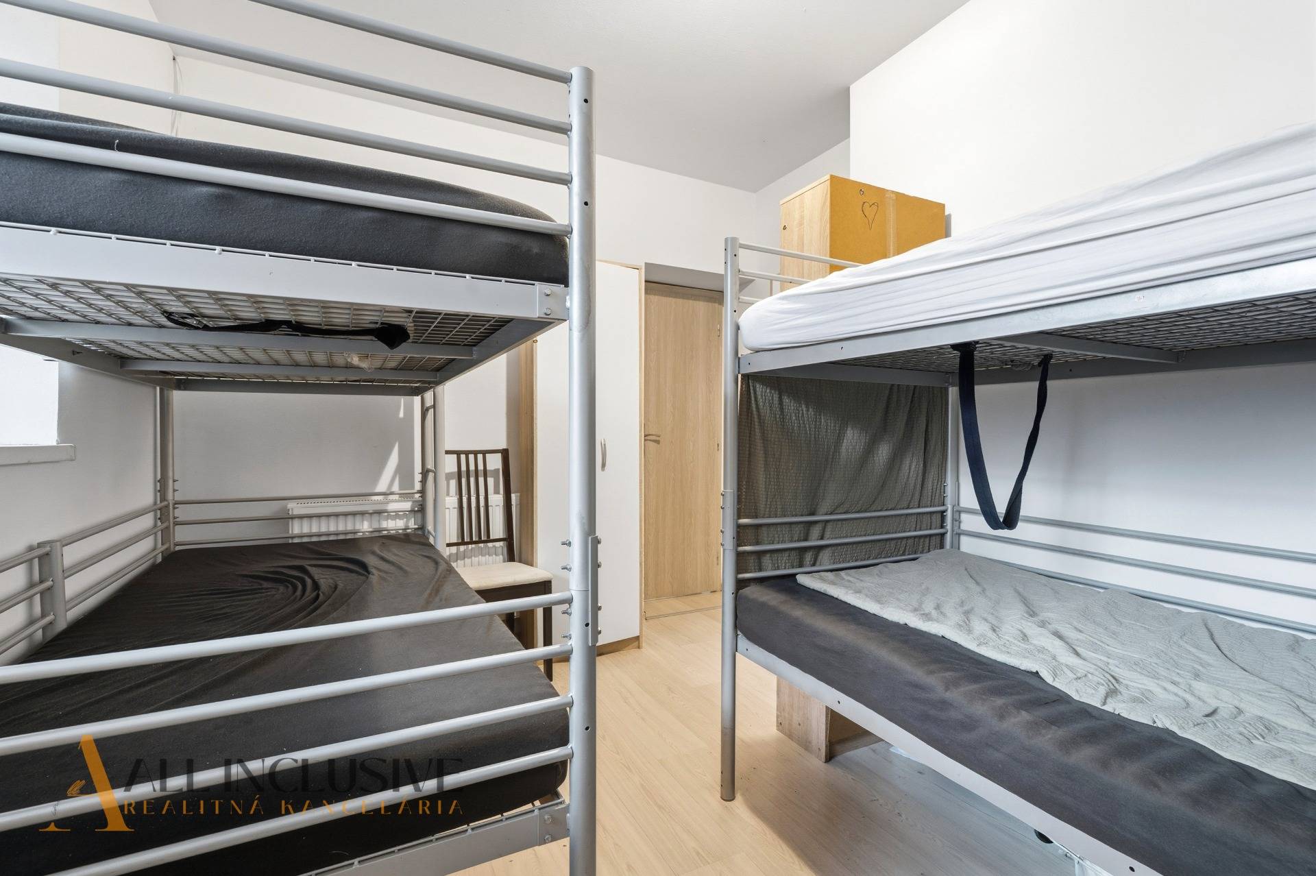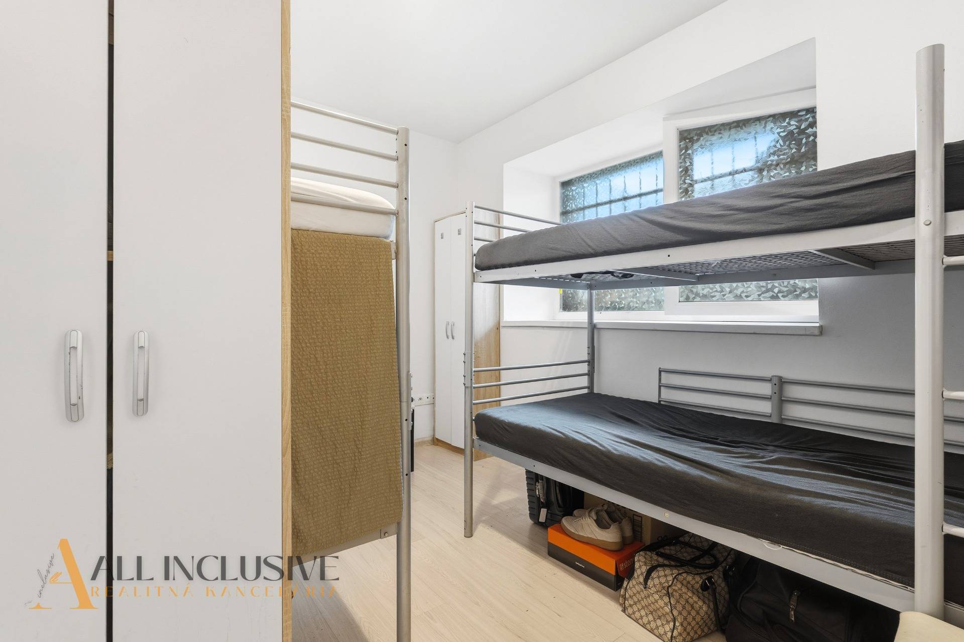 Byt je pôvodne riešený ako 3-izbový, avšak momentálne je prakticky rozdelený na 4 izby, kuchyňu, 2 samostatné toalety a 2 kúpeľne so sprchami. Takéto dispozičné riešenie ponúka mimoriadnu flexibilitu využitia – či už na bývanie pre viac osôb, prenájom alebo podnikateľské účely.