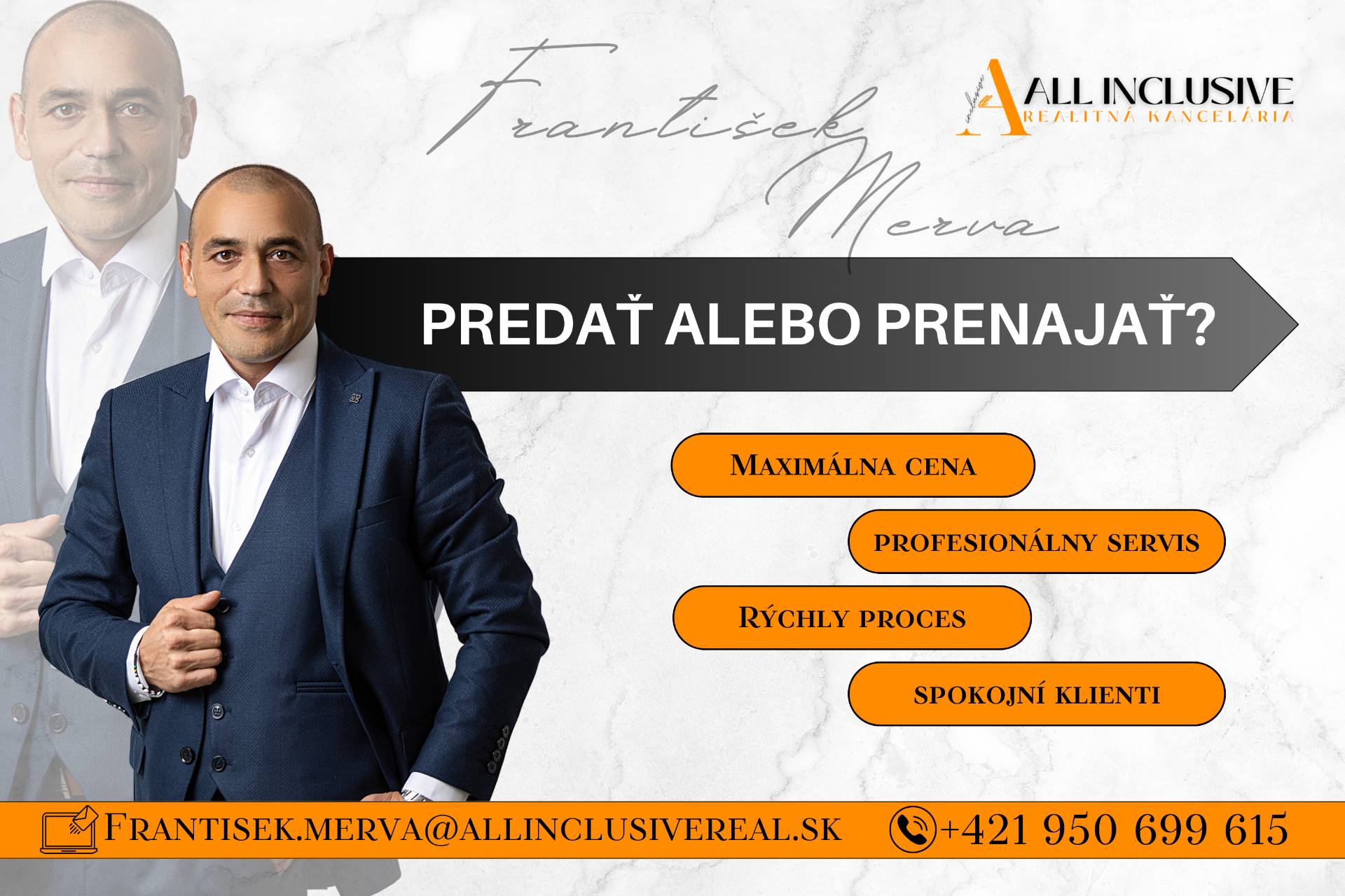 ALL INCLUSIVE REAL Vám poskytne komplexné a profesionálne služby pri predaji, kúpe alebo prenájme nehnuteľností. V spolupráci s naším hypotekárnym partnerom Vám zaistíme najvýhodnejšie finančné riešenie pre Vašu nehnuteľnosť.