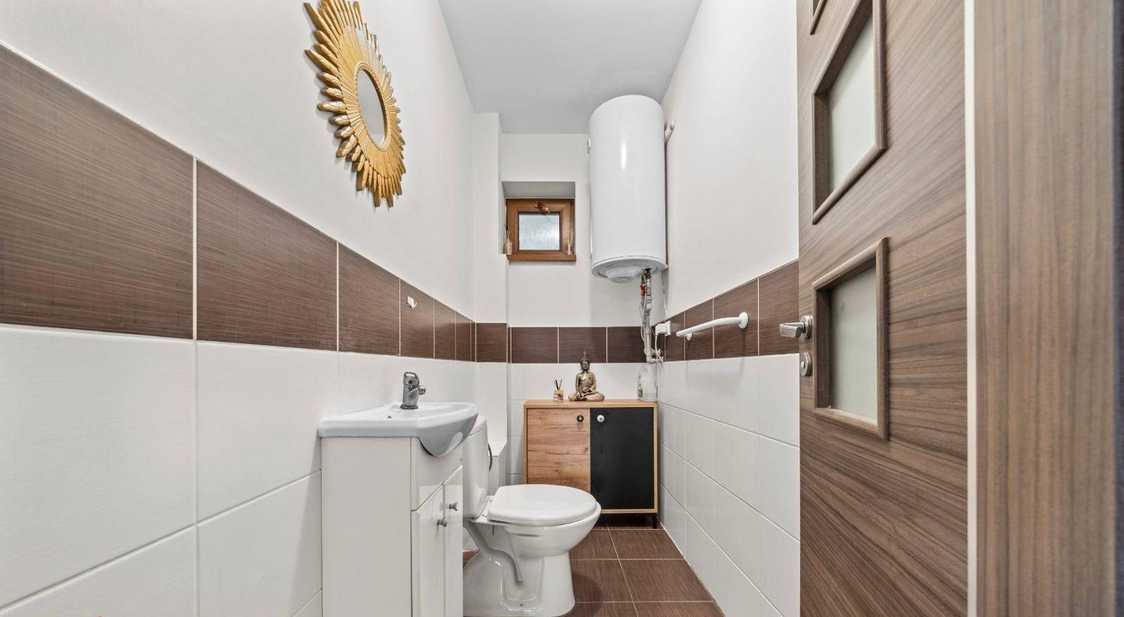 Rodinný dom má 5 izieb, 2 kúpeľne a 2 samostatné toalety, čo zabezpečuje vysoký komfort aj pre viacčlennú rodinu alebo viacgeneračné bývanie. Dispozícia domu je navrhnutá prakticky, s dôrazom na funkčnosť a každodenné pohodlie.