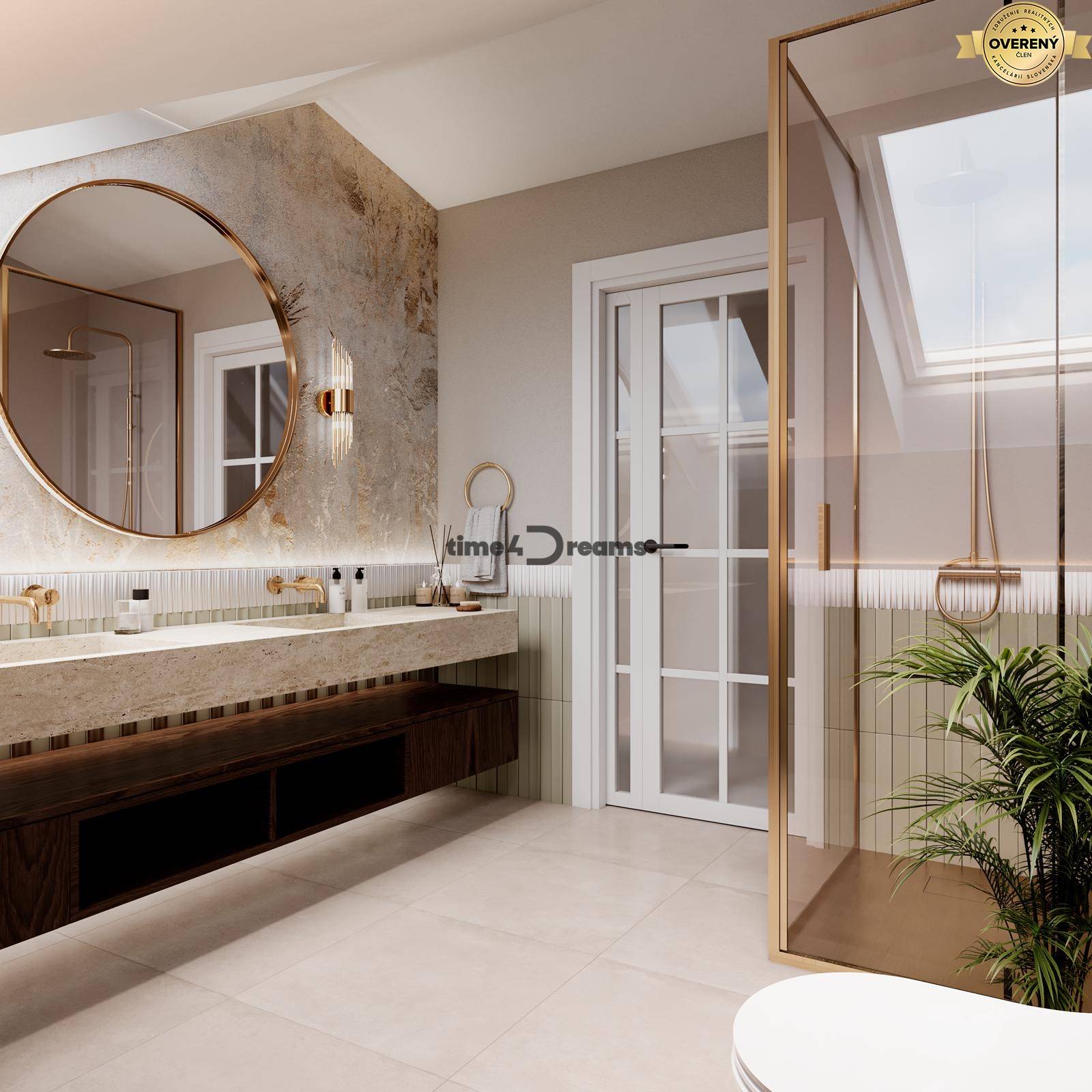 - Nočná časť je situovaná v podkrovnej prístavbe, kde sa nachádzajú veľkometrážne izby s elektricky ovládanými strešnými oknami najvyššej triedy značky Velux. Podkrovie vytvára intímnejší charakter priestoru a ponúka pokojné zázemie pre oddych. Byt je navrhnutý s dvoma nadštandardne veľkými kúpeľňami, čo výrazne zvyšuje komfort bývania.