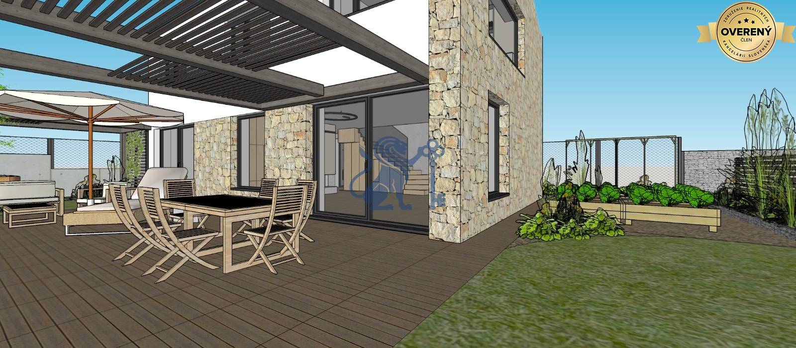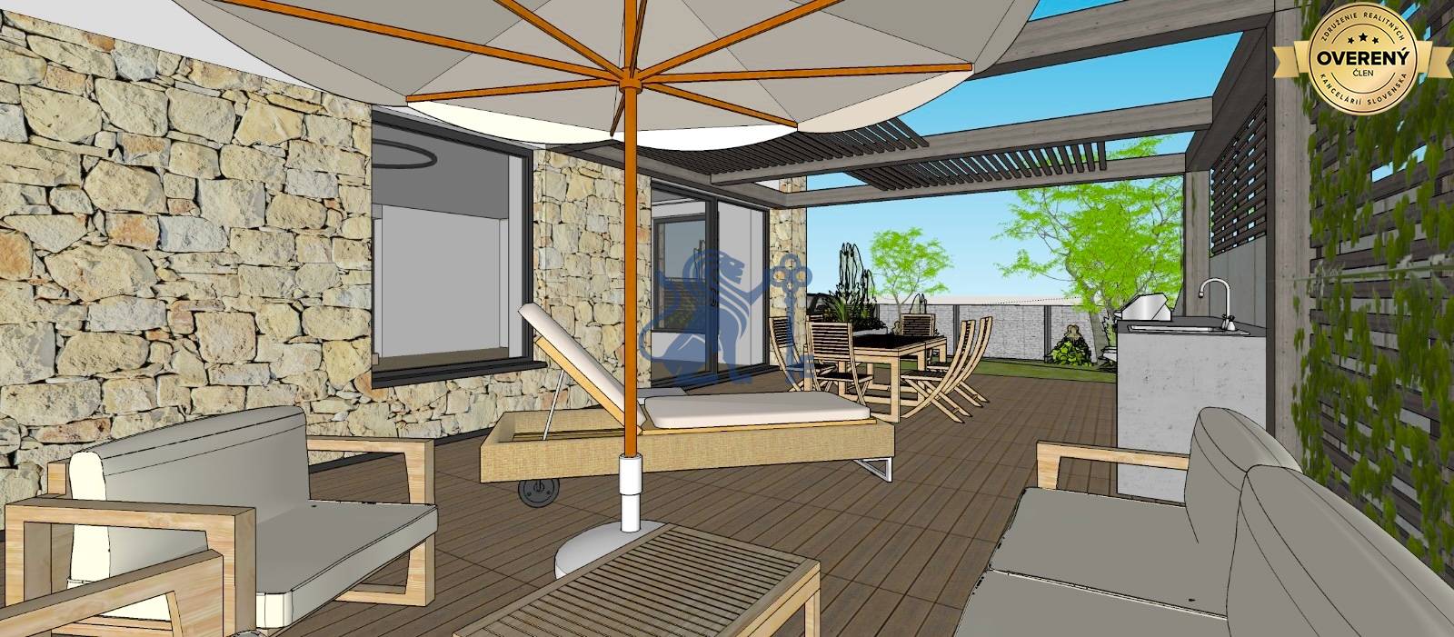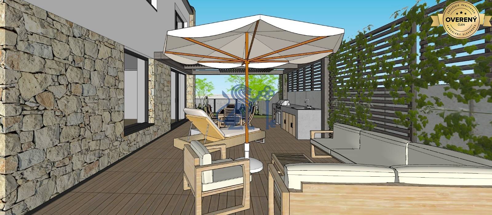 V dome sú zabudované kvalitné hliníkové okná s izolačným trojsklom vo farbe antracit, vonkajšie elektricky ovládané exteriérové žalúzie, hliníkové bezpečnostné vstupné dvere so sklom, betónové potery, sadrové vnútorné omietky, maľovky, sadrokartonové stropy, príprava pre kuchynskú linku, kompletná vodoinštalácia a elektroinštalácia. Dom je napojený na vlastnú studňu a žumpu. Predáva sa vo vysokom technologickom prevedení, ale v štádiu HOLODOM. Je postavený z tehly hr. 300mm, zateplený s kvalitným zatepľovacím systémom (polystyrén hrúbky 200mm) s kombináciou betónovej fasády a tehlového alebo dreveného obkladu. Strecha je väzníkový krov a betónová škridla vo farbe antracit. Kúrenie zabezpečuje tepelné čerpadlo systémom vzduch – voda, ktoré je napojené vo všetkých obytných miestnostiach na podlahové vykurovanie. V každej miestnosti je predpríprava na klimatizáciu a dom ma predprípravu aj na fotovoltiku, ktorá je plánovaná na streche. Objekt bude mať aj predprípravu pre krb, termostaty so zónovou reguláciou každej obytnej miestnosti, predprípravu pre alarm. Terénne úpravy sú plánované v základnom prevedení, aby si ich každý majiteľ mohol dokončiť podľa svojich snov a predstáv. Dom bude oplotený, ale bez vstupnej brány a bráničky. Ku vstupu do domu bude viesť vydláždený chodníček zo zámkovej dlažby. Dažďova voda je odvádzaná do vsakov. Bude dodaná aj prípojka a verejné LED osvetlenie komunikácie.
