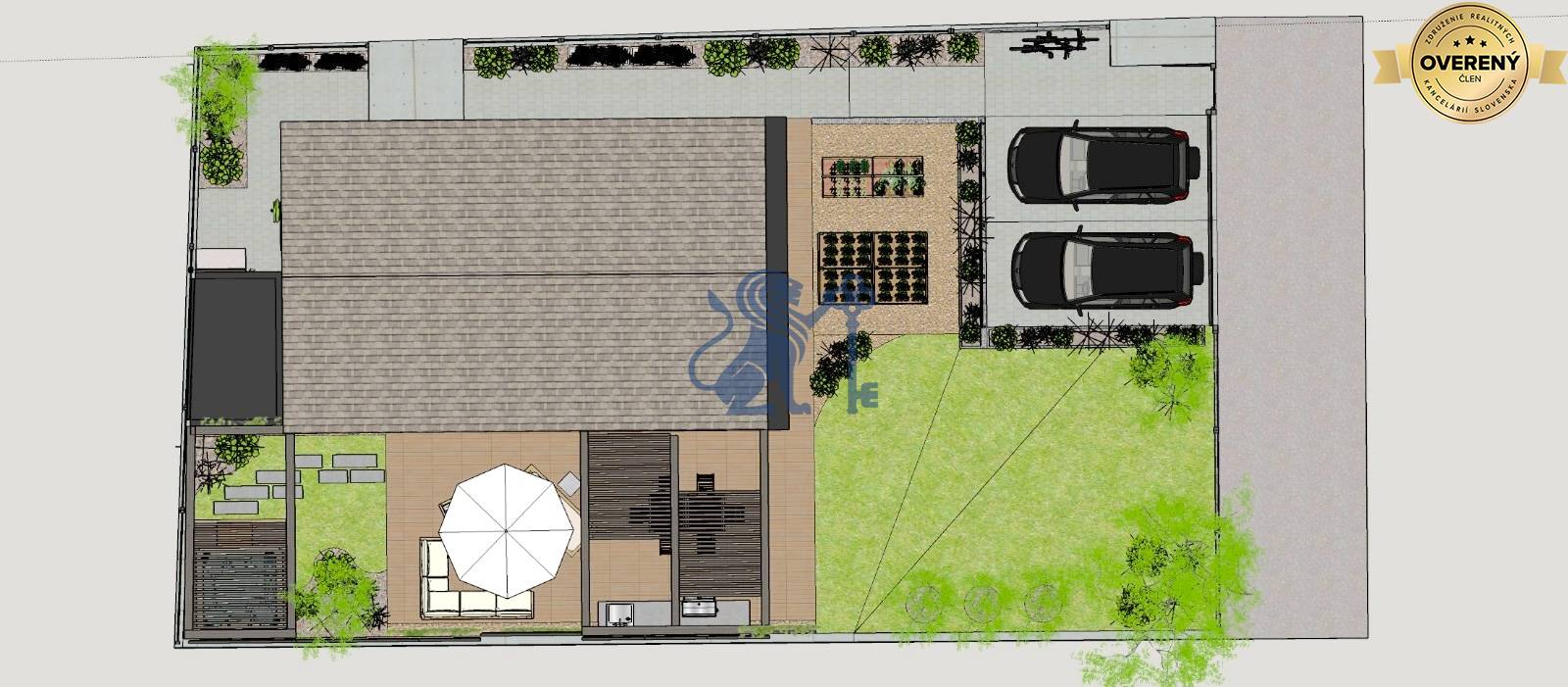 Celková plocha pozemku vrátane komunikácie: 369,50 m2