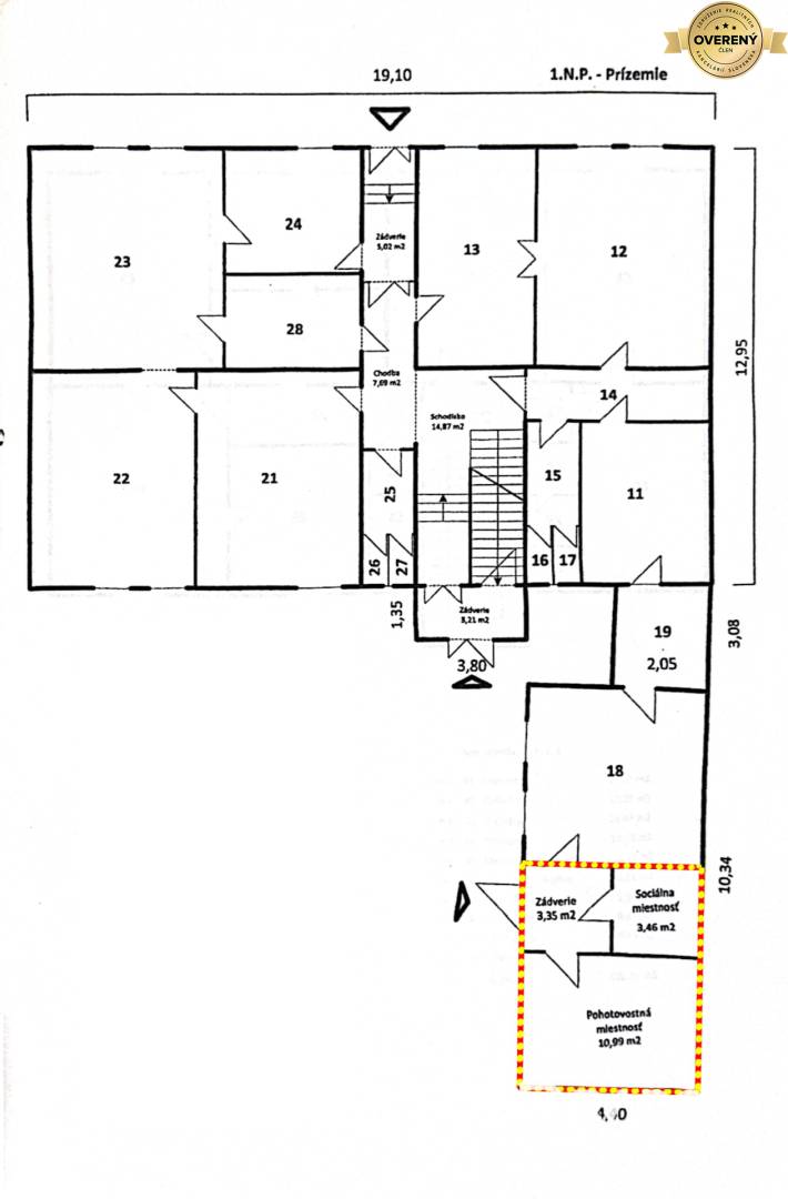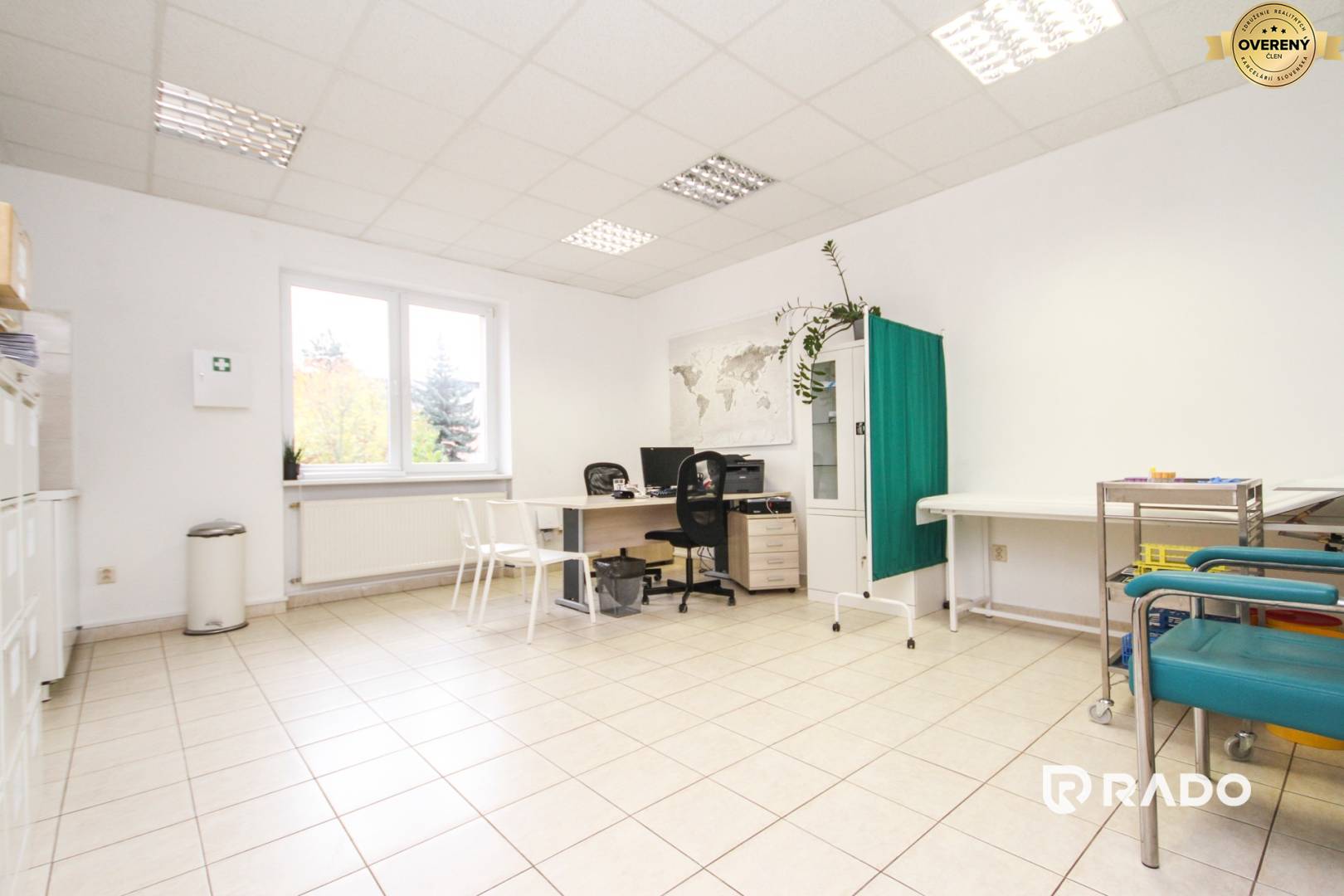 Tento priestor dispozične pozostáva zo vstupnej chodby (čakárne), z ktorej je vstup do 4 samostatných miesností (ordinácií). Všetky 4 miestnosti sú prepojené dverami, takže sa dá tento priestor rôzne rozdeliť a nakombinovať podľa Vašich potrieb. Môže tu byť kľudne jedna veľká ambulancia, alebo 4 menšie. Na chodbe sa nachádzajú aj pánske a dámske toalety.
