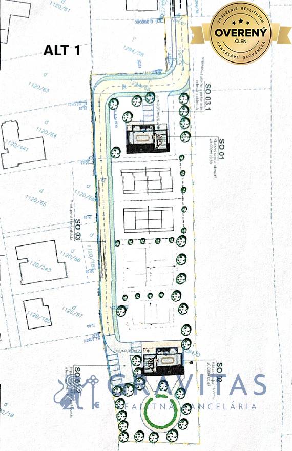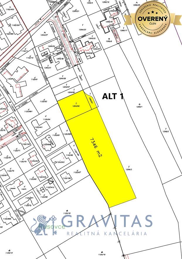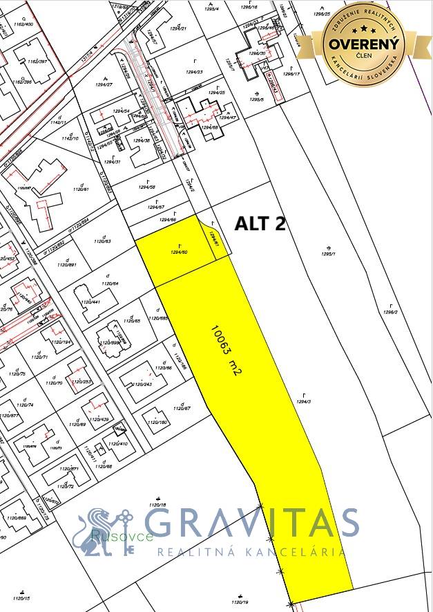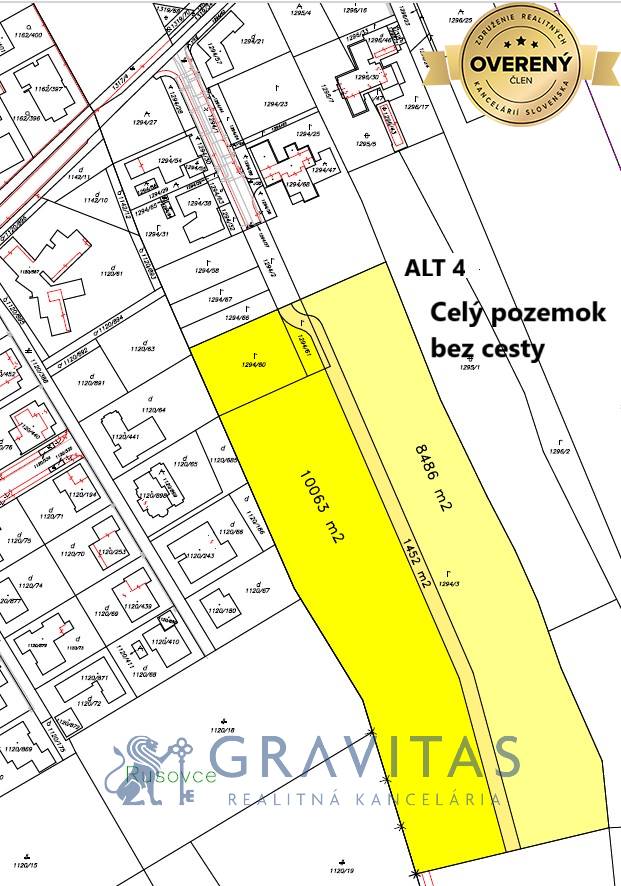 Alt 1: najmenšia alternatíva a je to menšia 1/2 pozemku s právoplatným ÚR pre športový areál o výmere 7346 m2 a s vlastnou komunikáciou z boku pozemku. Alt 2: celá 1/2 pozemku s právoplatným ÚR pre športový areál o výmere 10063 m2 a s vlastnou komunikáciou z boku pozemku. Alt 3: celá 1/2 pozemku o výmere 10063 m2 s komunikáciou v strede súboru pozemkov. Alt 4: celý súbor pozemkov s cestou v strede, ktorá ostane vo vlastníctve aktuálneho majiteľa a všetci ostatní majitelia pozemkov v okolí budú mať právo prechodu. Viď fotogalériu.