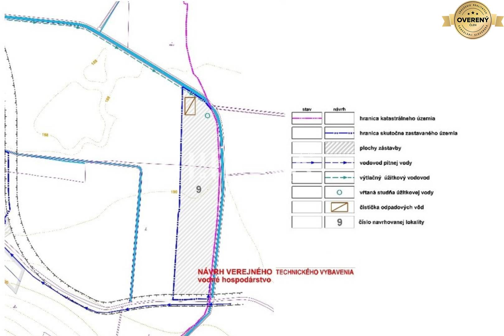 - Voda: Vodovodný rad DN100 – pitná voda