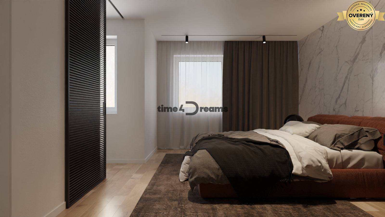 - Na poschodí sa nachádza priestranná spálňa s vlastnou kúpeľnou a šatníkom , dve detské izby, centrálna kúpeľňa a balkón