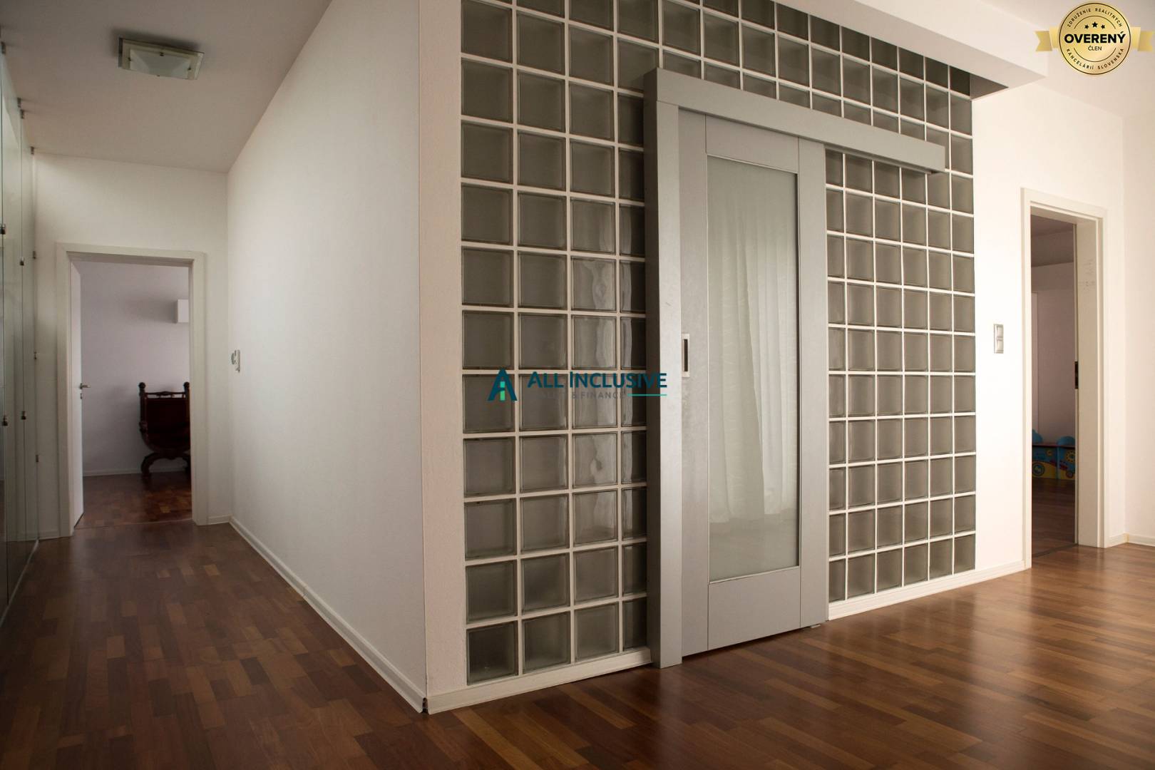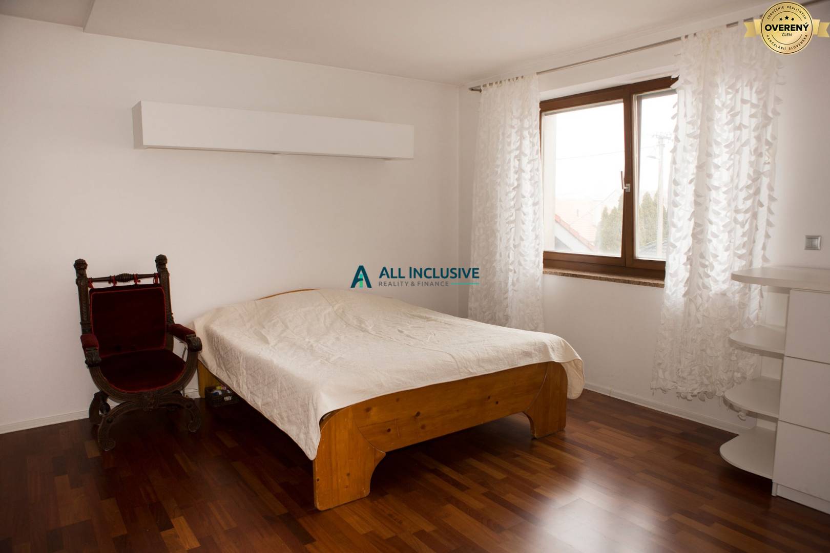 ● Horné podlažie ponúka dve detské izby so vstavamými skriňami, kúpeľňu s vaňou, toaletou a bidetom a hlavnú spálňu so šatníkom, ktorá má k dispozícii vlastnú kúpeľňu so sprchovým kútom.