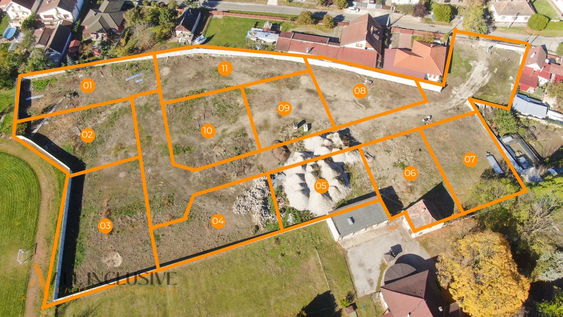 Súčasťou ponuky je 11 stavebných pozemkov, určených na výstavbu rodinných domov. Predaj už úspešne prebieha – predané sú pozemky č.1, 2, 3, 4, 7 a 10, čo potvrdzuje vysoký záujem o túto lokalitu.