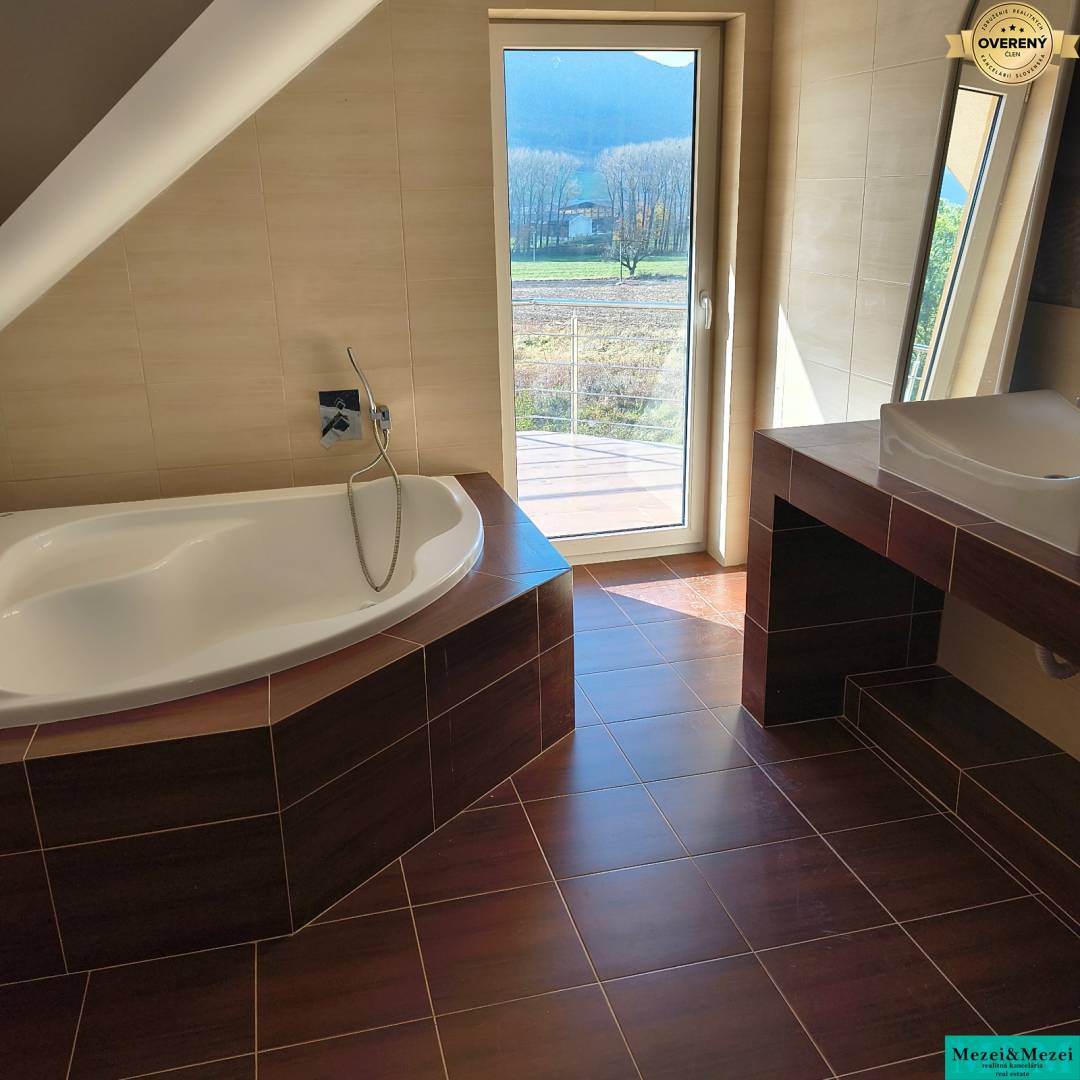 - kúpeľňa s vaňou, WC a veľkým panoramatickým oknom