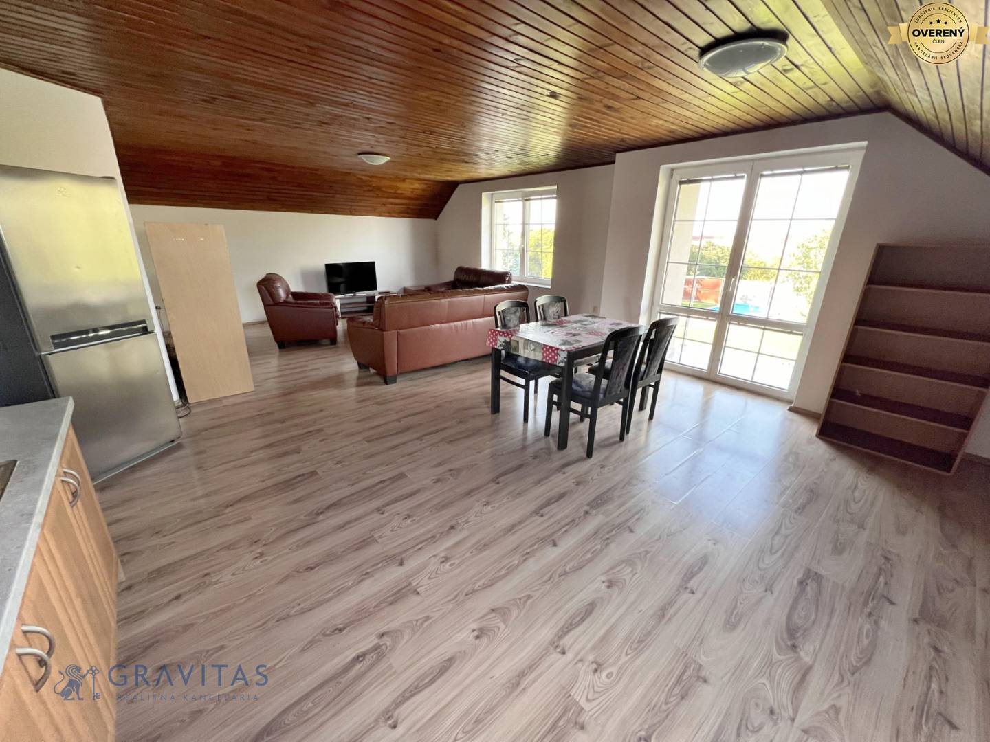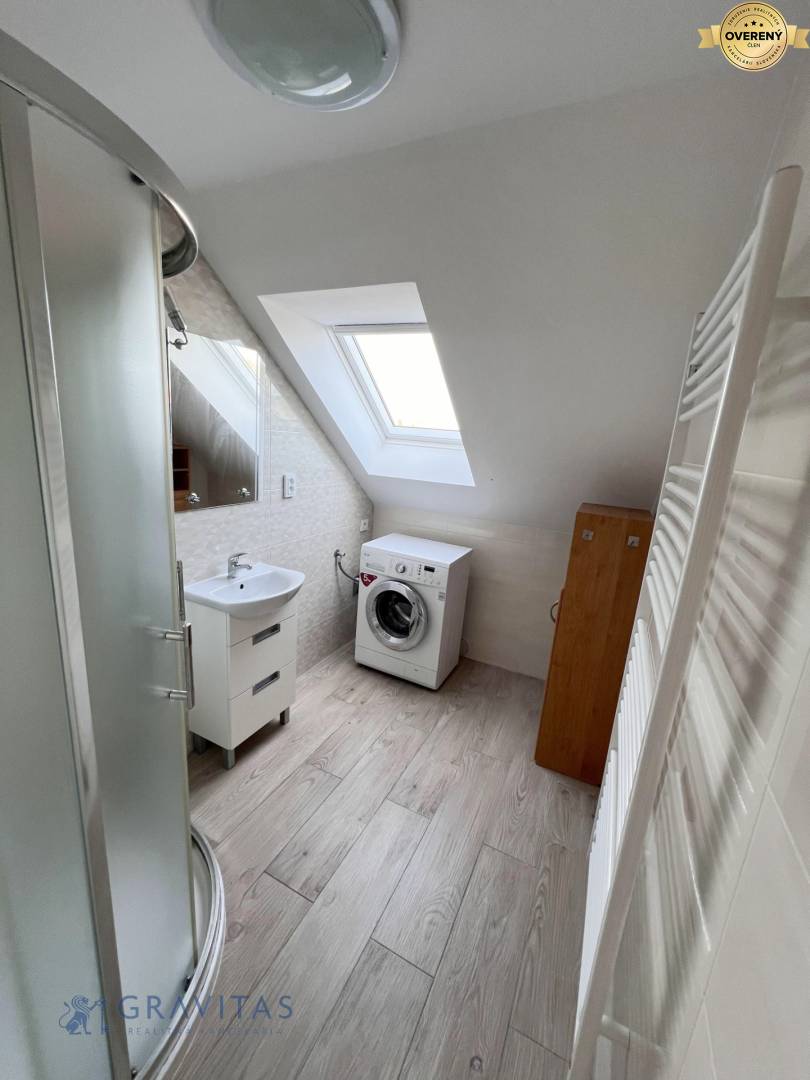 Ponúkame na prenájom 3 izbový byt v rodinnom dome na Vojenskej ul., Rovinka. Byt sa nachádza v podkroví rod. domu a má výmeru 90 m2. V dome sa nachádzajú 2 byty. Z obývačky je vstup priamo na loggiu. K dispozícii je záhrada, kde si môžete dopestovať zeleninu a altánok na príjemne posedenie. Byt je ihneď k dispozícii. Byt je vhodný pre 1 až 2 osoby.