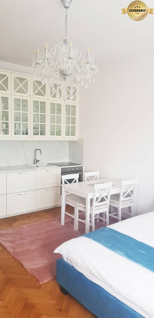 Dáme do prenájmu nádherný, kompletne rekonštruovaný a zariadený 1-izbový byt v absolútnom centre Bratislavy na Rázusovom nábreží s nezastretým, krásnym výhľadom na Dunaj. Byt má výmeru 39m2, nachádza sa na 3p./4 s výťahom, vysoké stropy, klimatizovaný, vonkajšie rolety, kúpeľňa s vaňou spolu s wc, na chodbe šatníková vstavaná skriňa. V izbe vybavená kuchynská linka na mieru s jedálenským stolom, manželská posteľ, komoda. Ideálne a plnohodnotné bývanie v absolútnom centre pre jednu osobu. K dispozícii wifi. Preferuje sa dlhodobý nájom, seriózny a stabilný nájomca .