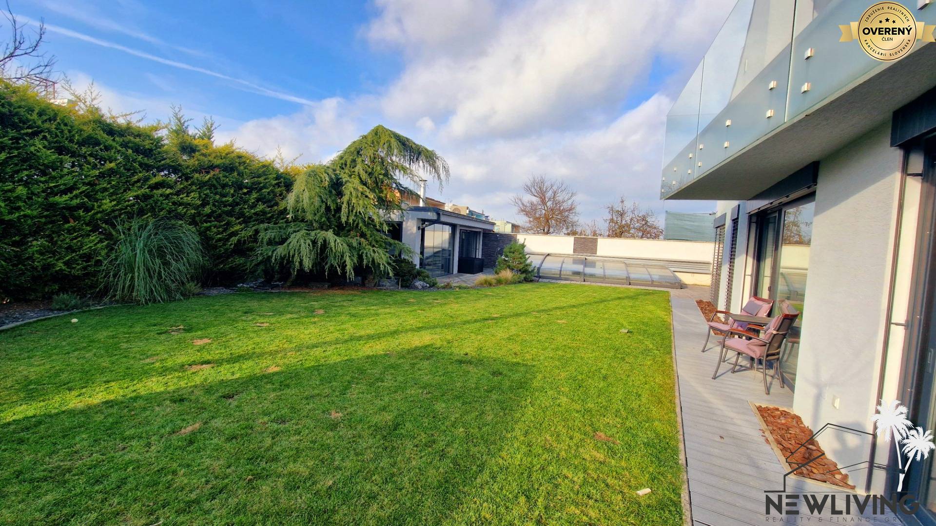 udržiavaná záhrada s prekrytým bazénom