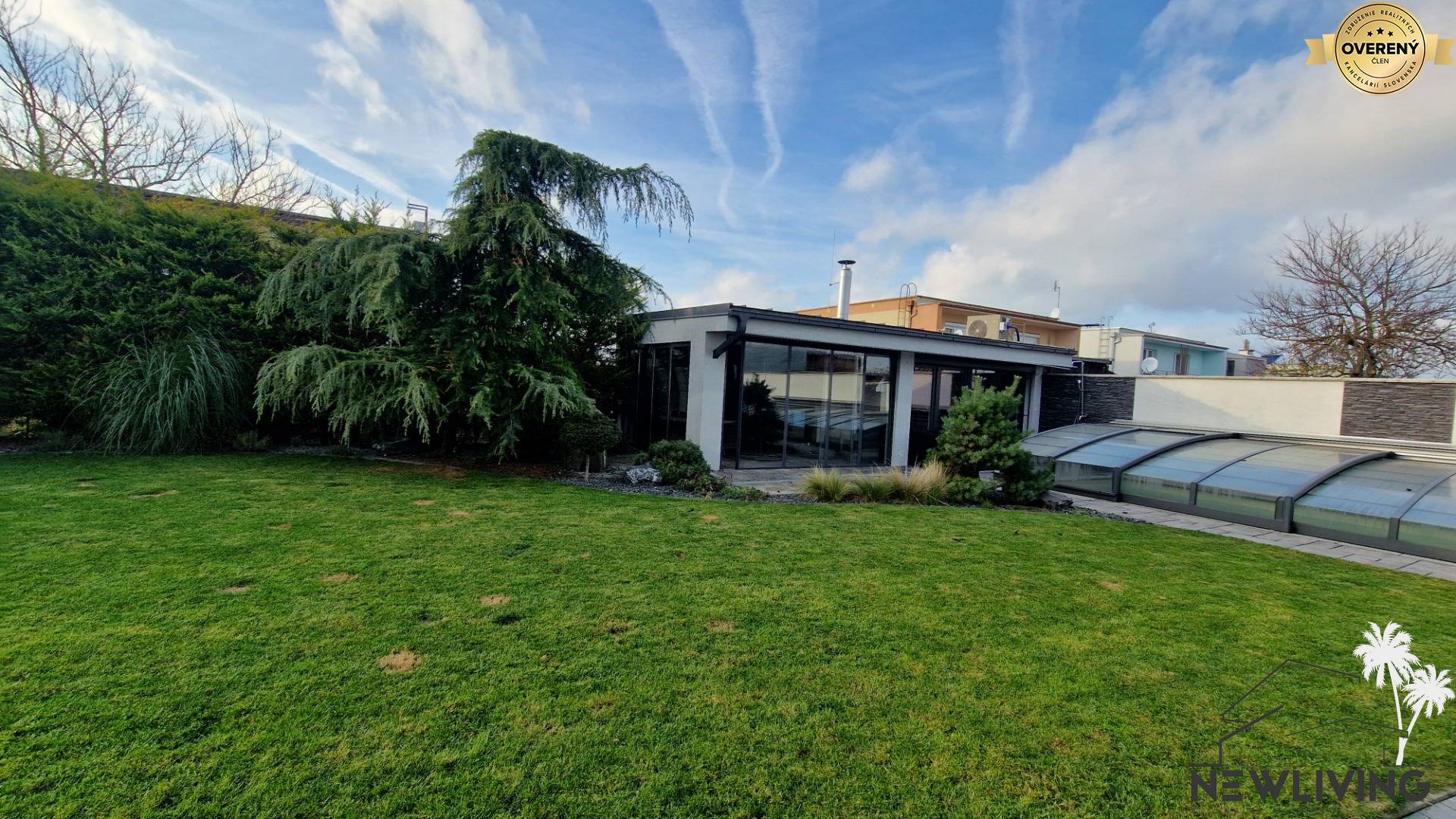 Krytý vonkajší bazén, slnečná veľká záhrada