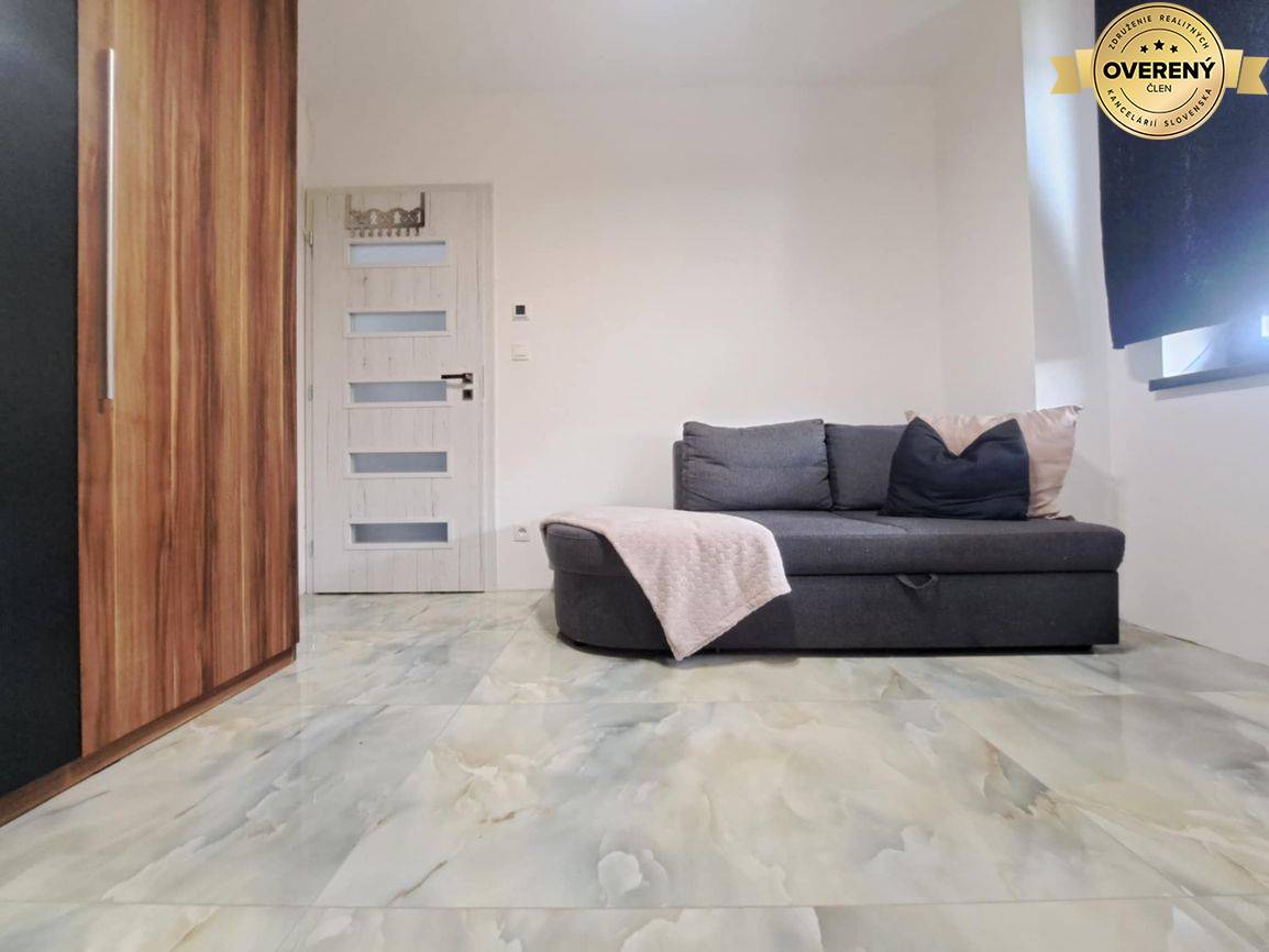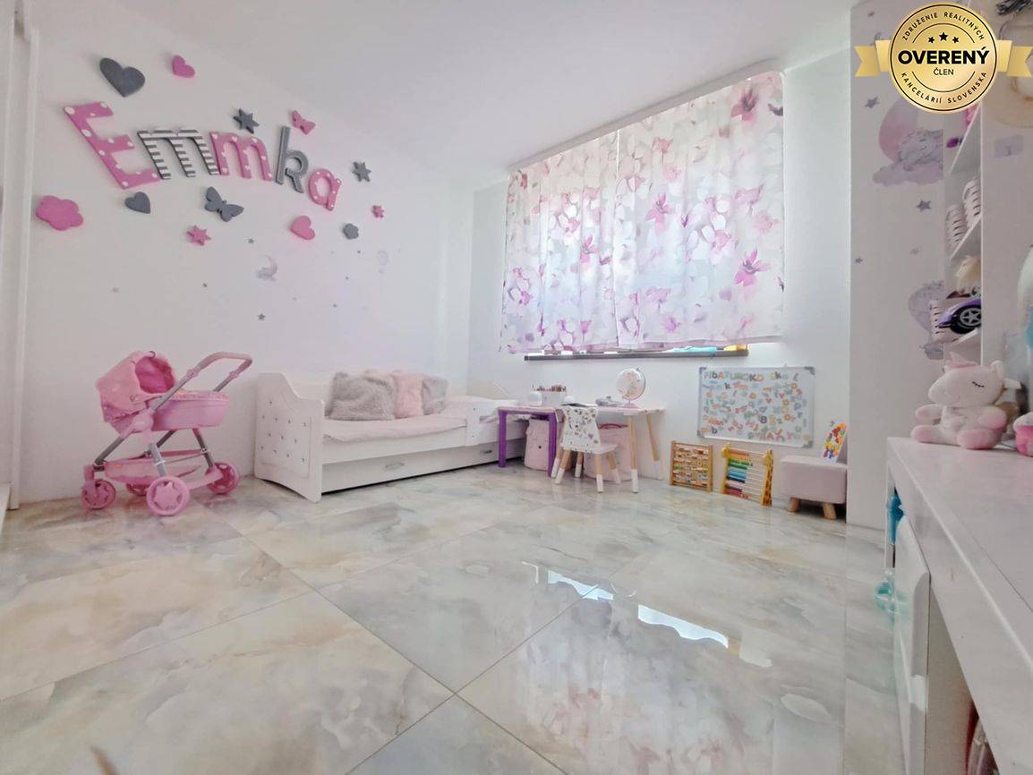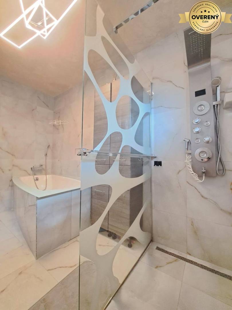 Z obývacej izby sa dostanete do samostatnej toalety, izby č. 1, technickej miestnosti s pred prípravou na práčku a sušičku, spálňa s výstupom na terasu, izba č. 2, kúpeľňa s vaňou a dvoj umývadlom značky Villeroy & Boch a moderným sprchovým kútom.