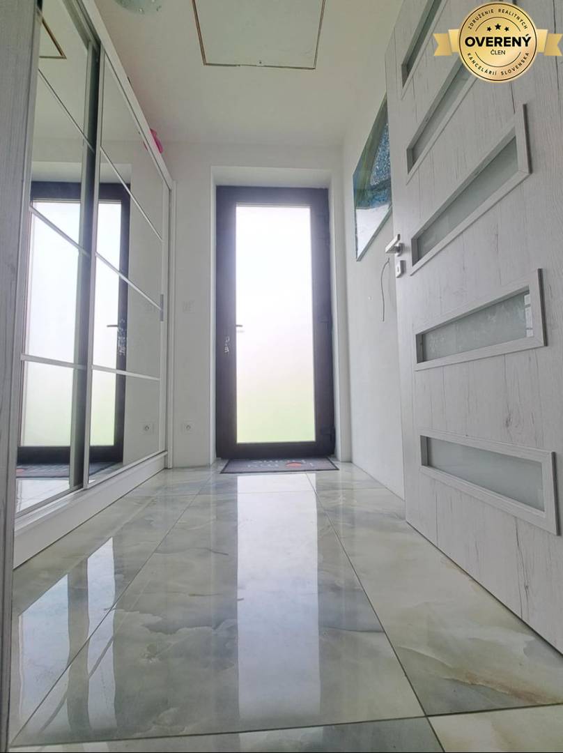 Disponuje vstupnou chodbou v ktorej sa nachádza výlez na povalu s úložným priestorom, ktorý si viete dokončiť na