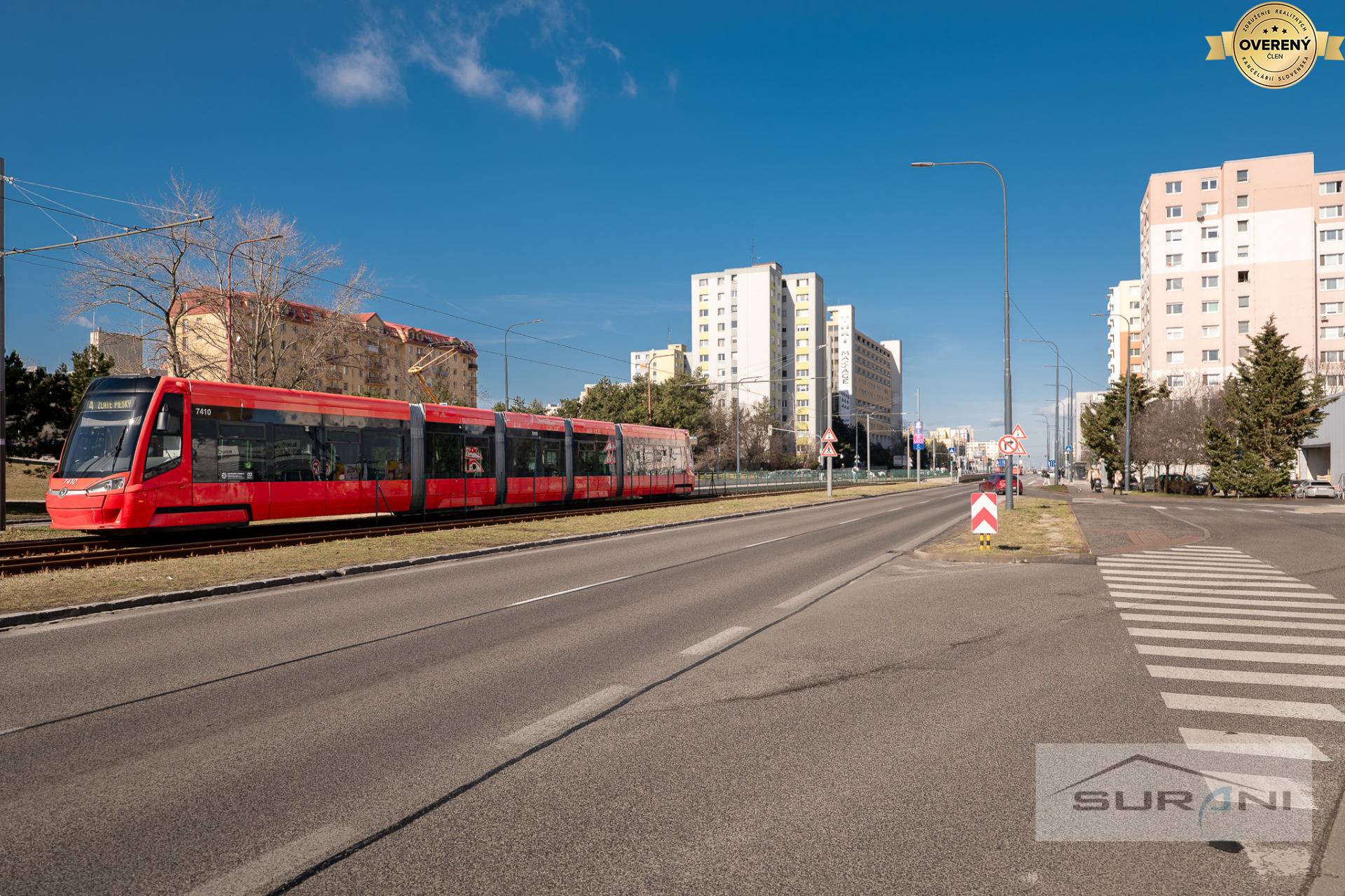 Zastávka MHD a električky je vzdialená približne 100 m, s rýchlym spojením do centra mesta aj smerom na Bory.
