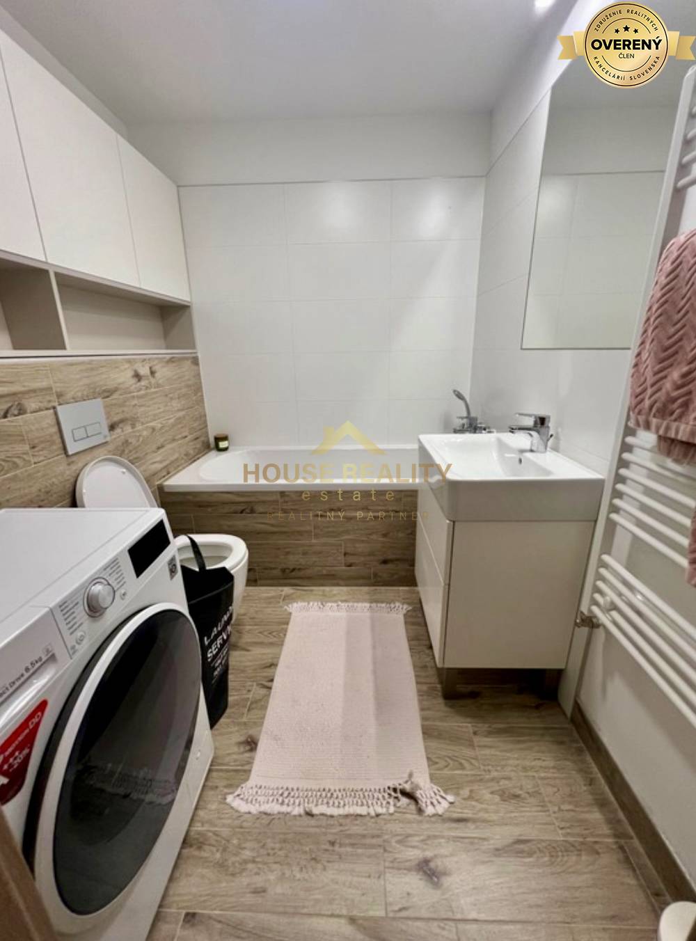 Novostavba - plastové okná, plávajúca podlaha, dlažba, kúpeľňa s vaňou, kuchynská linka so spotrebičmi, úložný priestor.