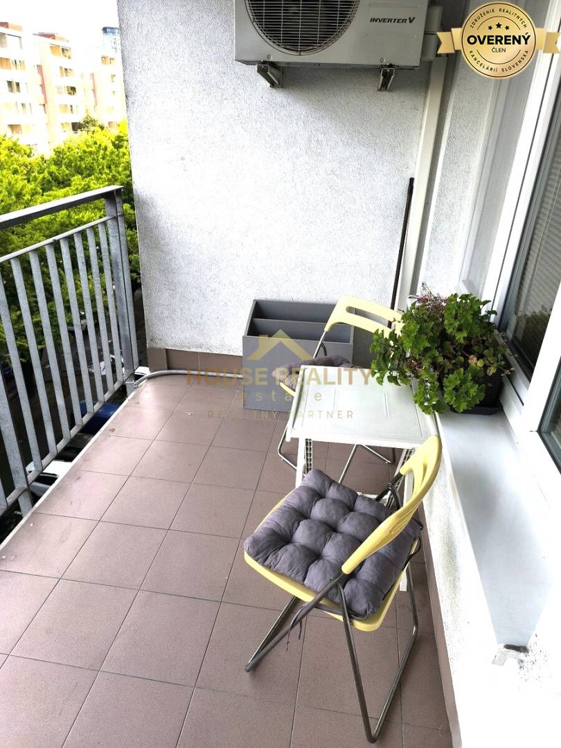 Novostavba, parkovacie státie v suteréne domu, balkón, klimatizácia.