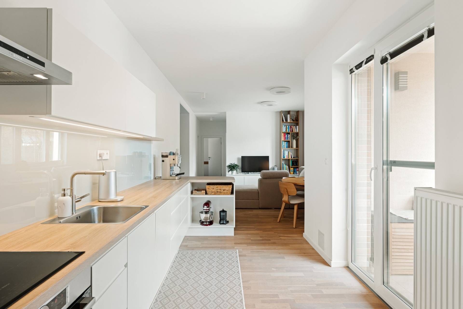 - spotrebiče BOSCH: chladnička s mrazničkou, umývačka riadu, práčka, sušička, plynový kotol, indukčná varná doska a elektrická rúra