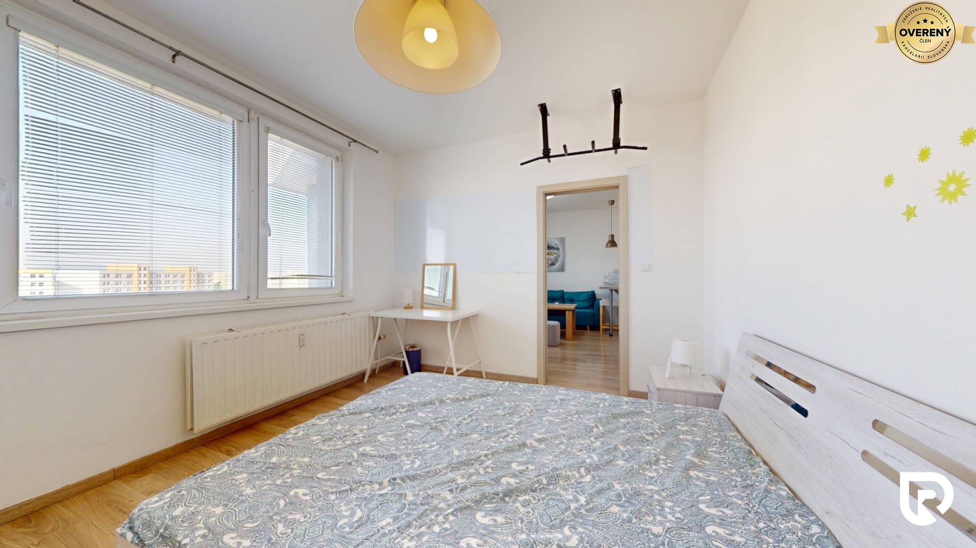 Byt sa nachádza na 12. poschodí z 12, čo zabezpečuje dostatok denného svetla, krásne otvorené výhľady a pokojné bývanie bez susedov nad Vami.