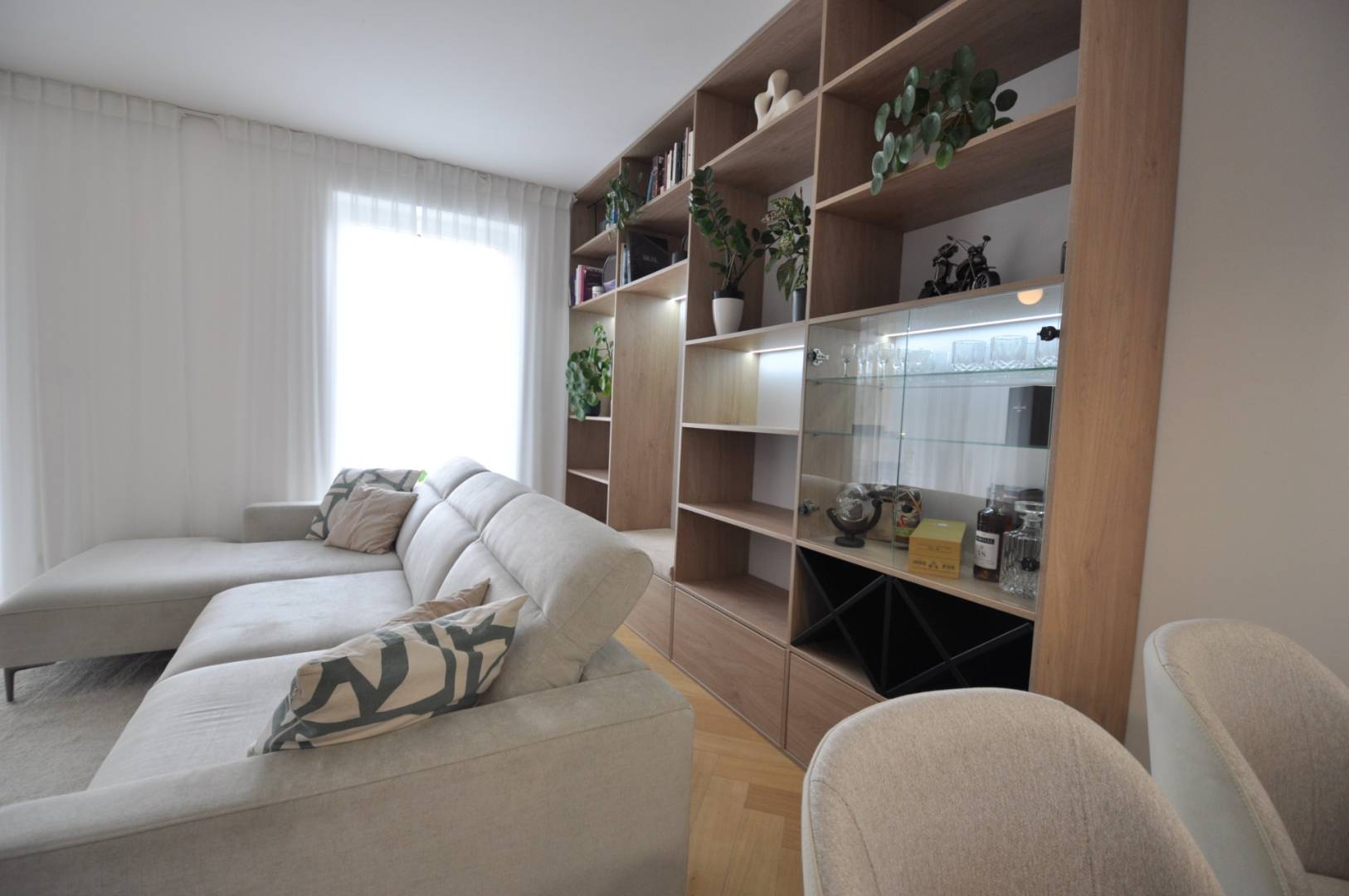 Kvalitná dubová dyhovaná podlaha. Skutočne veľkoformátové talianske obklady a dlažba o rozmeroch 120cm x 280 cm. Podomietkové Grohe batérie v oboch kúpeľniach antracitovej farby. Vstavané skrine na mieru vo všetkých izbách ako aj v predsieni a oboch kúpeľniach.