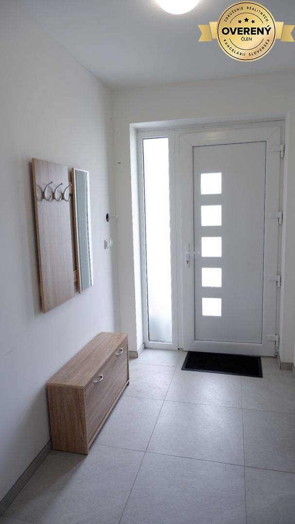 Úžitková plocha: 90 m2. Terasa 15 m2. Dom je postavený z tehly Porotherm, zateplený polystyrénom s hrúbkou 15 cm. Strešná krytina je betónová - Terano. Kúrenie v obývačke a kuchyni je podlahové, v izbách je kúrenie zabezpečené konvektormi. Okná sú Gealan - trojsklo.
