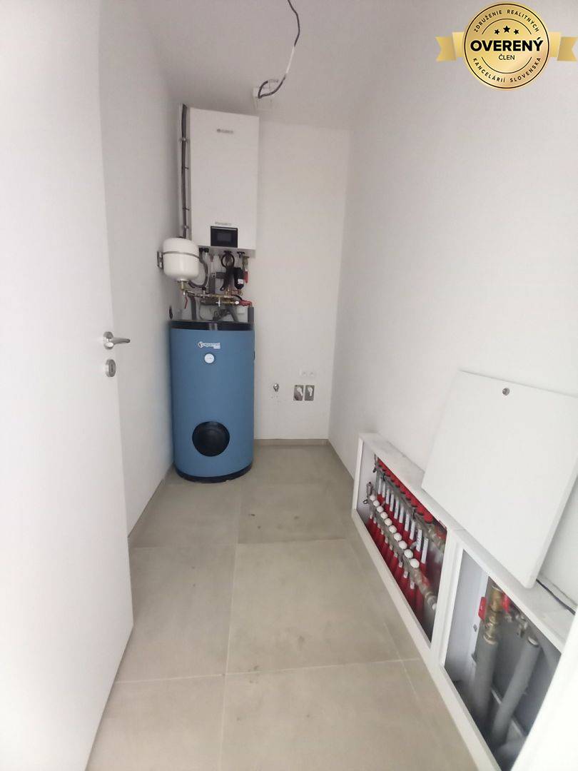 - technická miestnosť s pred prípravou na práčku a sušičku, tepelným čerpadlom a zásobníkom vody