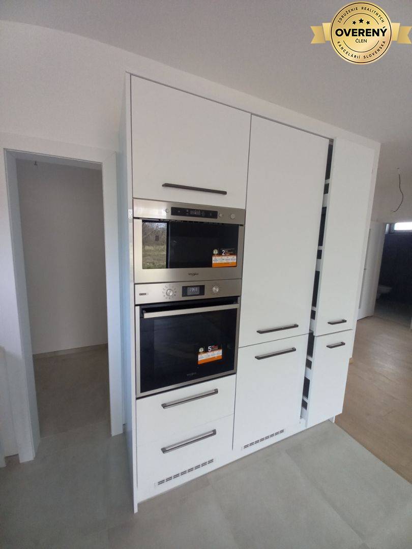 - parkety, dlažba, sanita, zárubne a dvere, kuchynská linka so vstavanými spotrebičmi značky whirlpool (chladnička s mrazničkou, mikrovlná rúra, rúra, varná doska, umývačka riadu)