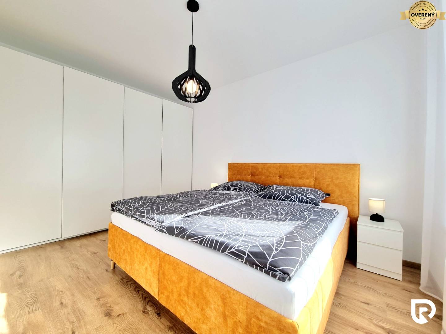 • spálňa s veľkou rolldor skriňou, ktorá poskytuje dostatok úložného priestoru, manželskou posteľou, nočnými stolíkmi, lampami a elektrickými žalúziami.