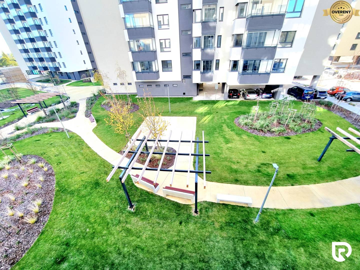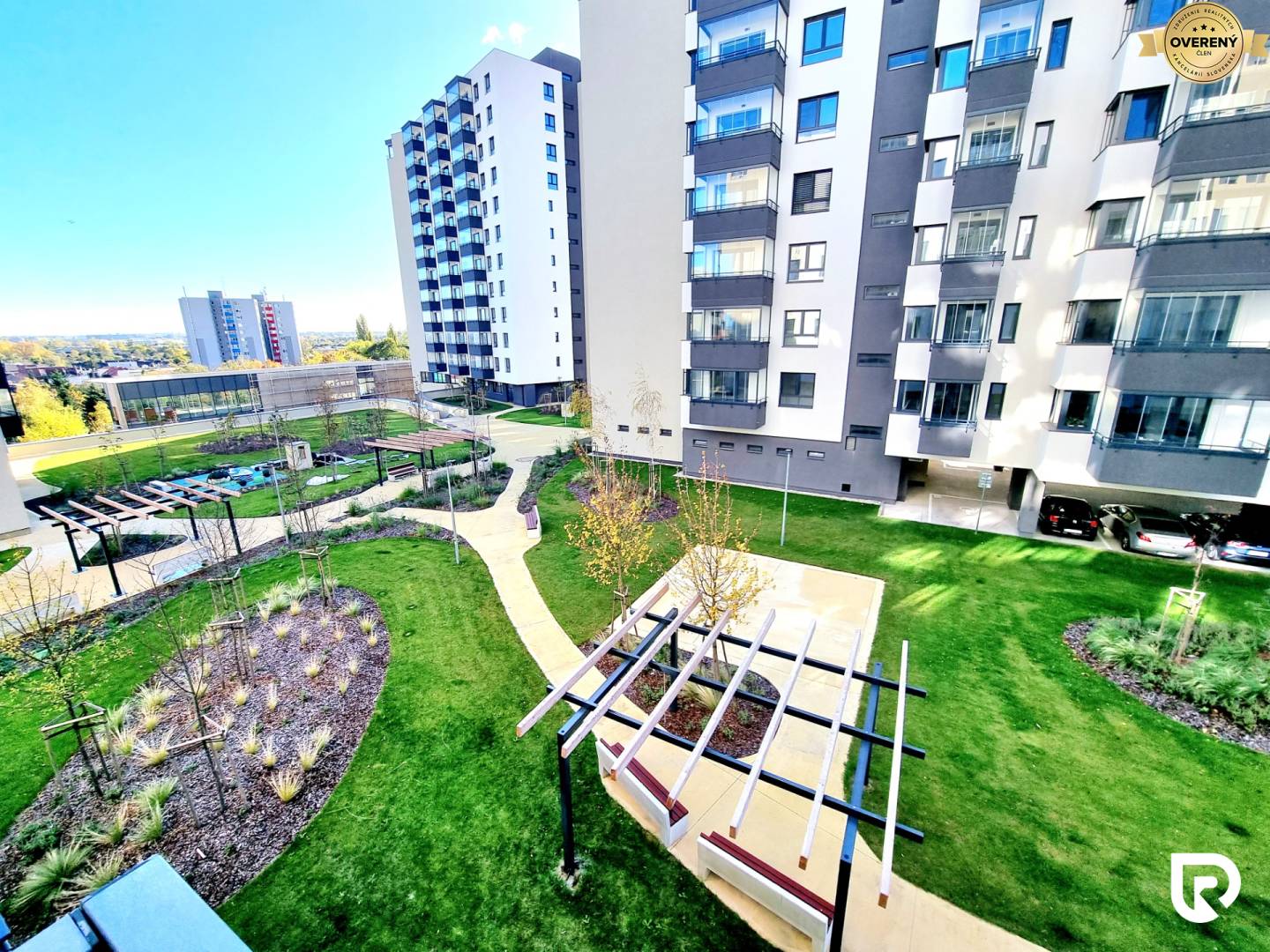 • upravené zelené plochy v okolí domu s miestami pre oddych a komunitnou zónou