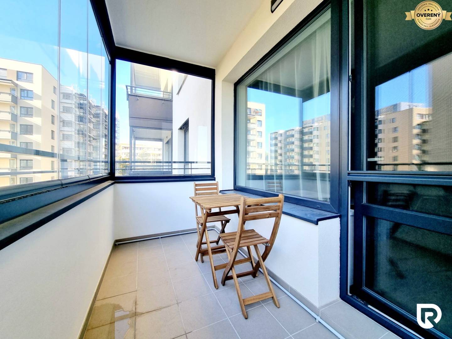 • priestranná presklená loggia s terasovým sedením (posuvné sklenené panely, po stranách manuálne žalúzie).