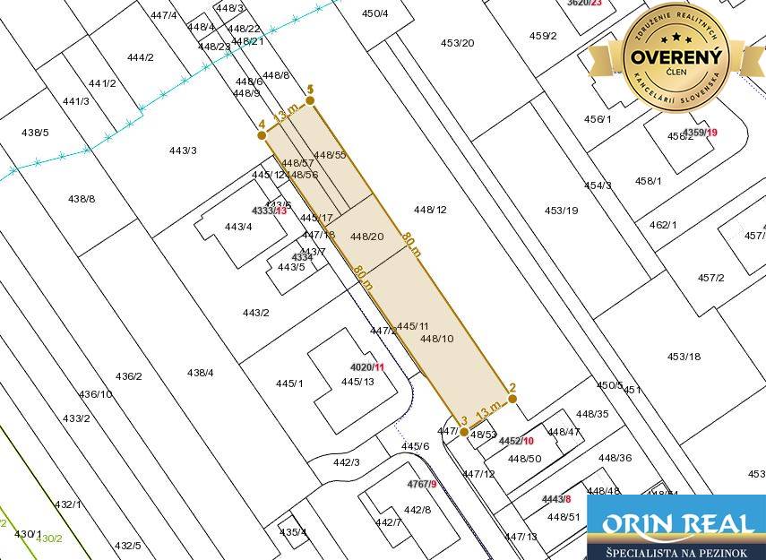 Pozemok má celkovú rozlohu 1044m2 a rozmery - šírka 13m a dĺžka 80m, je slnečný disponuje pred pozemkom všetkými IS - voda, elektrina, plyn, optika, kanalizácia. UPI vydané na stavbu dvojpodlažného rodinného domu vrátane podkrovia, či malopodlažnej bytovej radovej zástavby s maximalnou zastavanosťou 25% /261m2 a max prípustnou zastavanosťou rozvojovej plochy 30%.