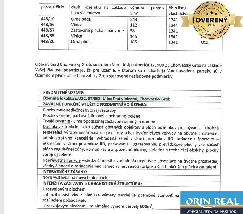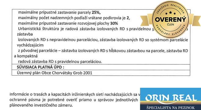 Licencovaná realitná kancelária Orin real Vám ponúka na predaj skvelý stavebný pozemok v starej časti obce Chorvátsky Grob na konci slepej ulici Pod Vinicami.
