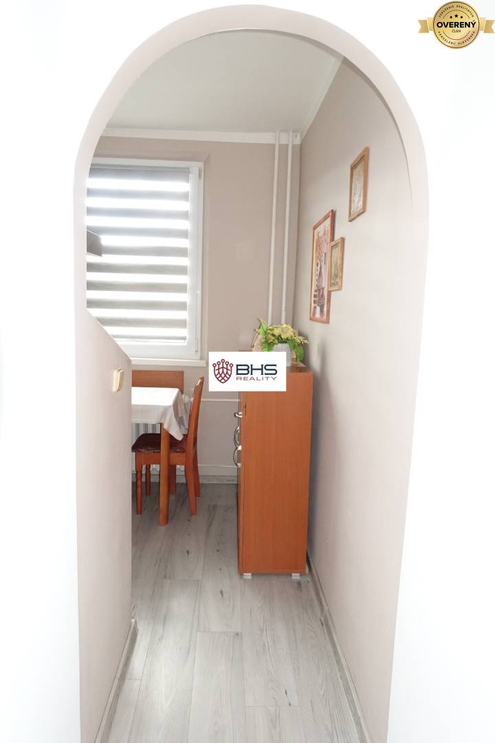 Byt pozostáva z troch obytných miestností (izieb) a príslušenstva, ktorým je predsieň, kuchyňa, kúpeľňa, toaleta a pivnica. K bytu patrí aj pivnica na prízemí bytového domu. V byte bola realizovaná rekonštrukcia – bezpečnostné vchodové dvere, plávajúce podlahy na chodbe a v kuchyni, interiérové dvere do kúpeľne a do toalety, nová kúpeľňa, nové WC, kuchynská linka do „L“, plastové okná v celom byte, nové vnútorné žalúzie, zasklenie lodžie.