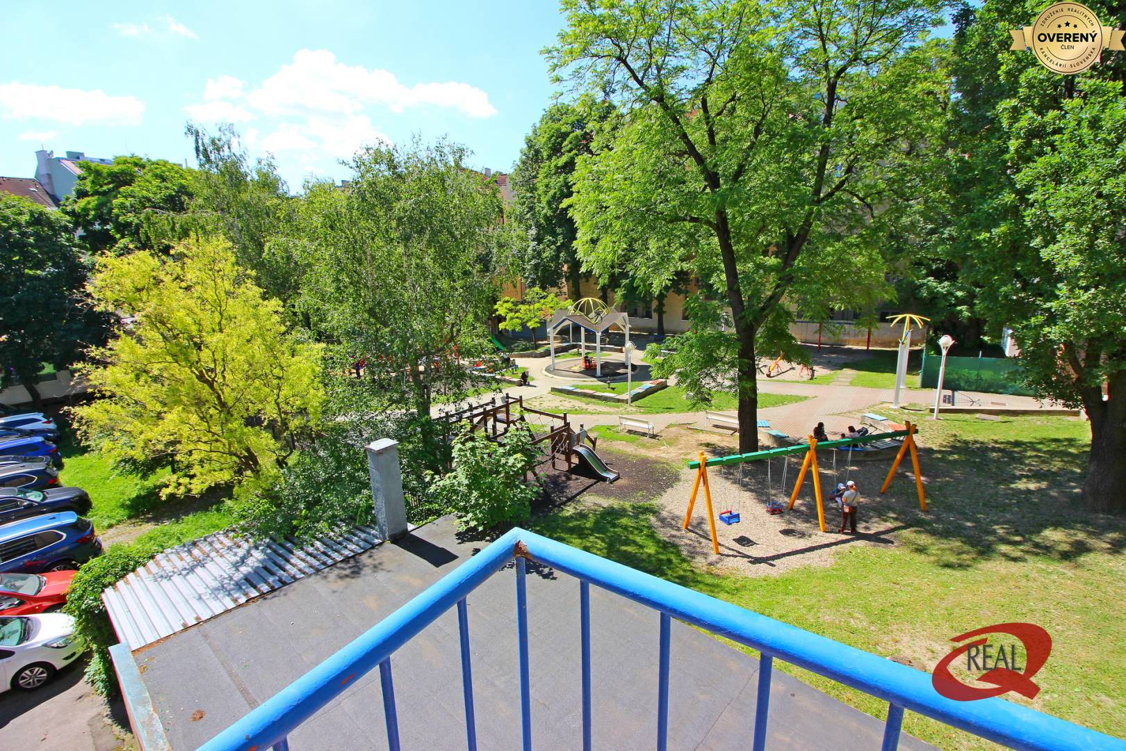 - kuchyňa, obývacia izba s balkónom, kúpeľňa sú orientované do dvora a detské ihrisko Slubekova záhrada