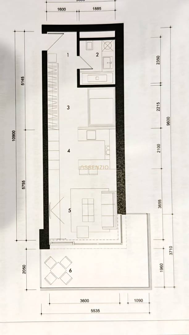 - otvorená izba s kuchynským kútom, obývačkou, spálňou a výstupom na loggiu