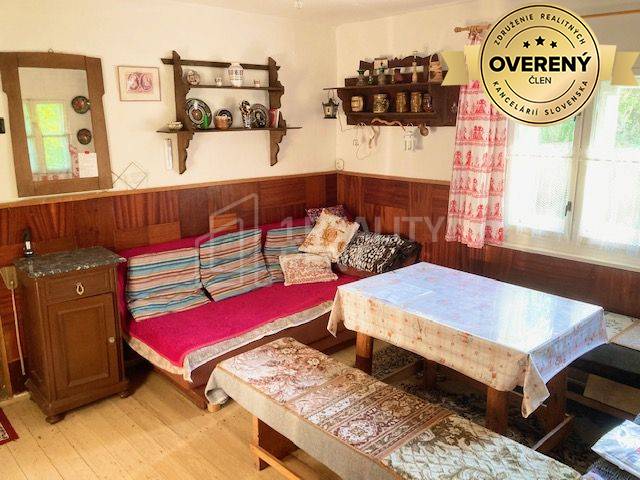Ponúkame na predaj pôvodnú drevenicu vo vyhľadávanej lokalite Malej Fatry v obci Terchová-časť Šípková. Nehnuteľnosť sa nachádza na konci osady, kde už nie je žiaden ruch a môžete si tak vychutnať čaro krásnej, nerušenej prírody. Prístup je po asfaltovej ceste, čiastočne už neupravenej, avšak celoročne udržiavanej a zjazdnej. Samotná drevenička je v pôvodnom stave, zastavanú plochu má 54m2. Na 1.NP sa nachádza veľká kuchyňa s kachľovou pecou a obývačka taktiež s kachľovou pecou. Z chodby vedú schody do podkrovia, kde sa nachádzajú dve manzardky, slúžiace ako spálne. Kúpeľňa tu nie je, rovnako ani prívod vody. Na umývanie sa používa voda zo studničky, pitnú si treba nosiť so sebou. Drevenica je napojená na elektrickú energiu. Na pozemku sú umiestnené dve latríny. Ďalej sa tu nachádza veľká šopa, pozostávajúca z dvoch samostatne uzamykateľných priestorov. drevenička je z časti podpivničená, pekná klenbová úprava, slúžila na uskladňovanie zeleniny a ovocia. Podobná klenbová pivnica je aj v rámci šopy. Šopa má zastavanú plochu 32m2. Drevenica stojí na pozemku s celkovou výmerou 1225m2, pozemok je mierne svahovitý a členitý. Táto nehnuteľnosť je vhodná pre kutilov, nakoľko má veľký potenciál na úpravy a dostavby podľa vlastných predstáv.