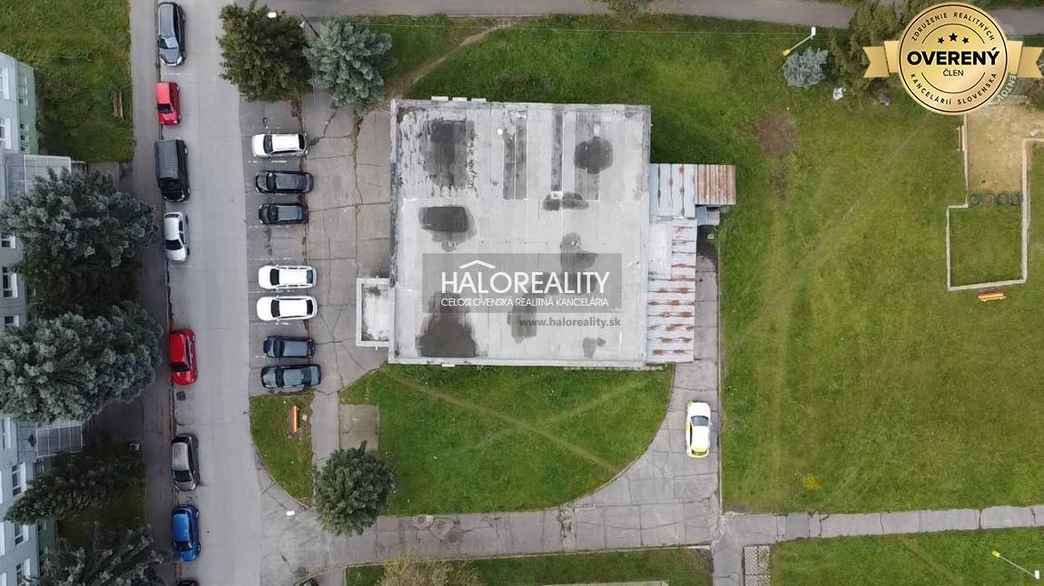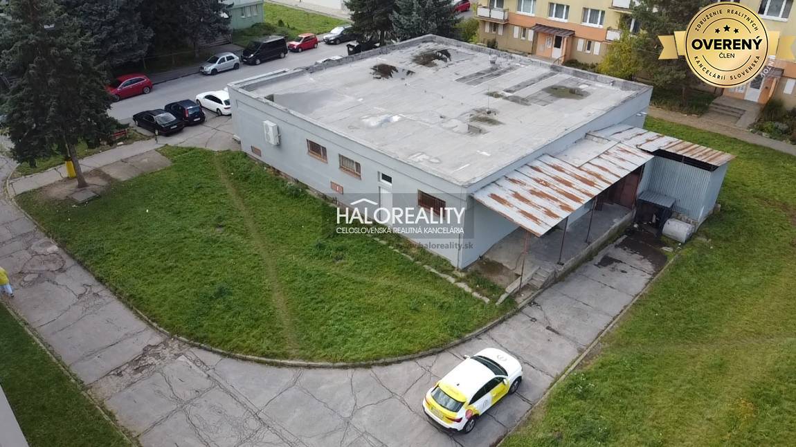 Jednopodlažná, panelová, vnútorné priečky z tehál o rozlohe 408m2, strecha plochá - pokrytá ipou