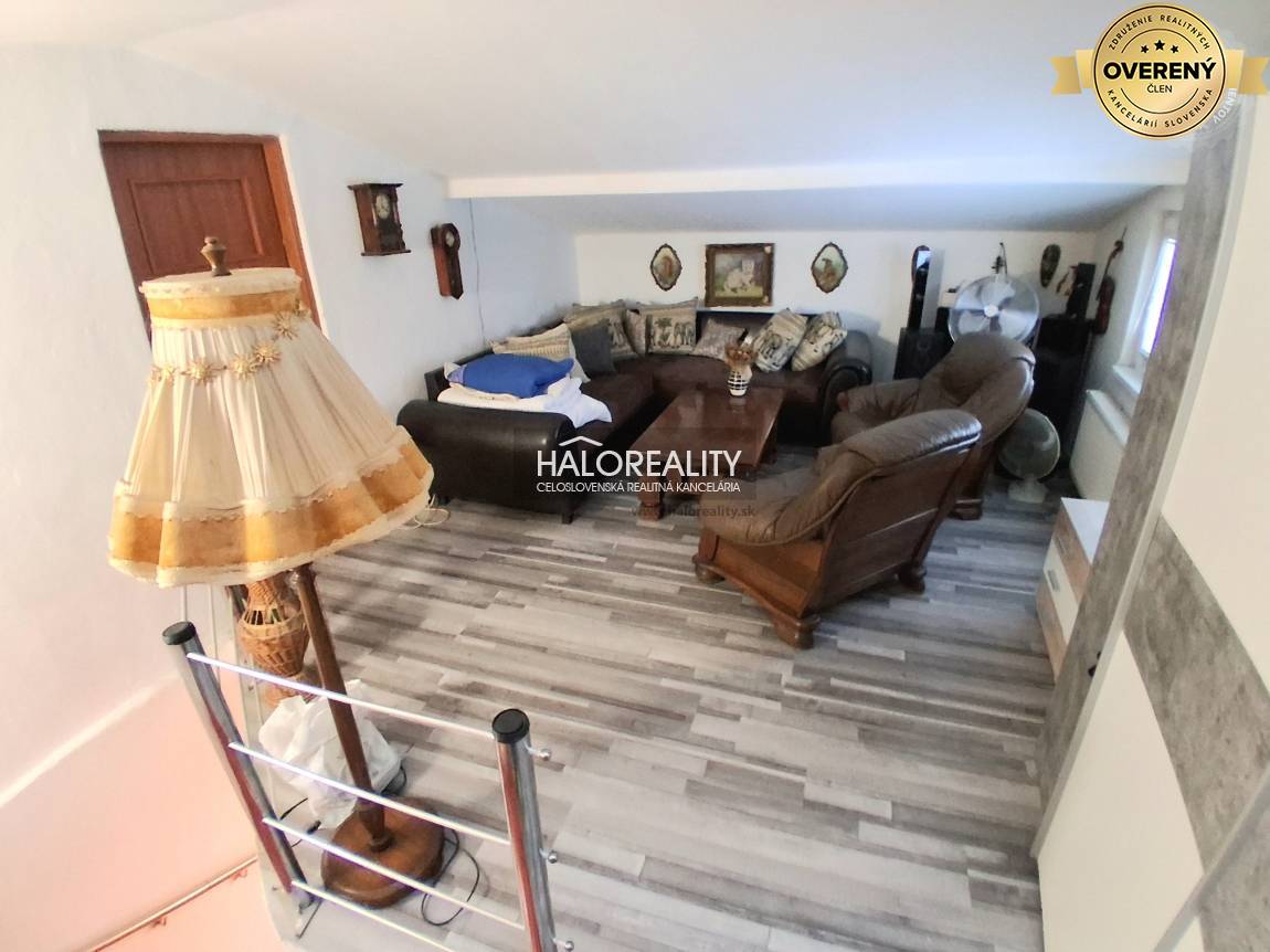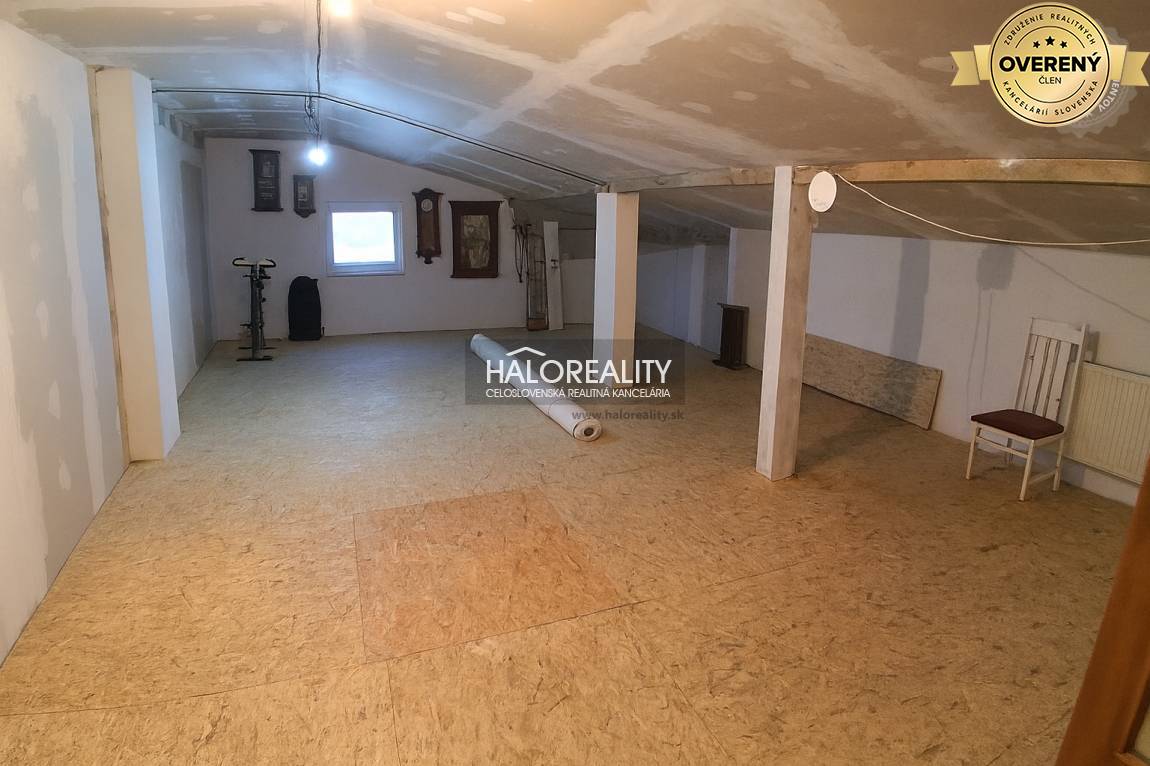 DISPOZÍCIA: Dom pozostáva z: chodby, kuchyne, spálňa, jedna spoločenská miestnosť, obývacia miestnosť, kúpeľňa s WC, priestranné podkrovie po čiastočnej rekonštrukcii (predpríprava na bývanie). Pred domom je garáž so zastavanou plochou 5x4m. Za domom je terasa s prístreškom a záhrada.