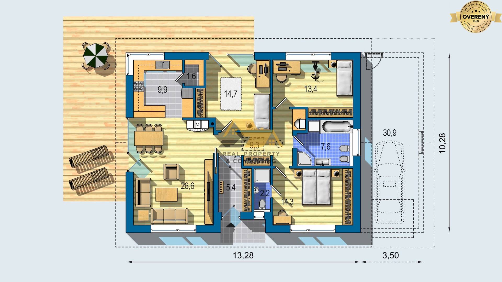 Realitná kancelária Real Property & Consulting s.r.o. ponúka na predaj novostavbu rodinného domu s garážou na Gúgskej ulici v Nových Zámkoch. Bungalov s mierne upravenou vnútornou dispozíciou (viď foto). Napojený na všetky inžinierske siete.