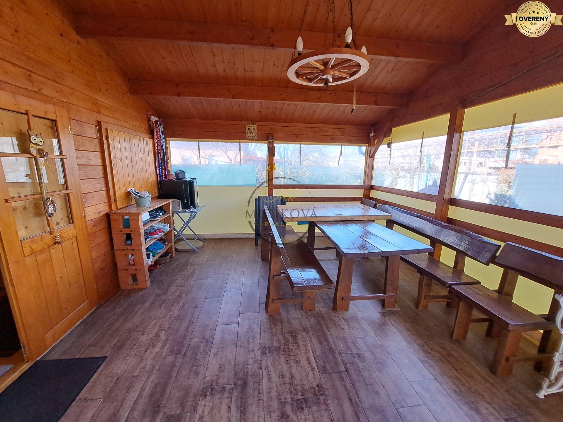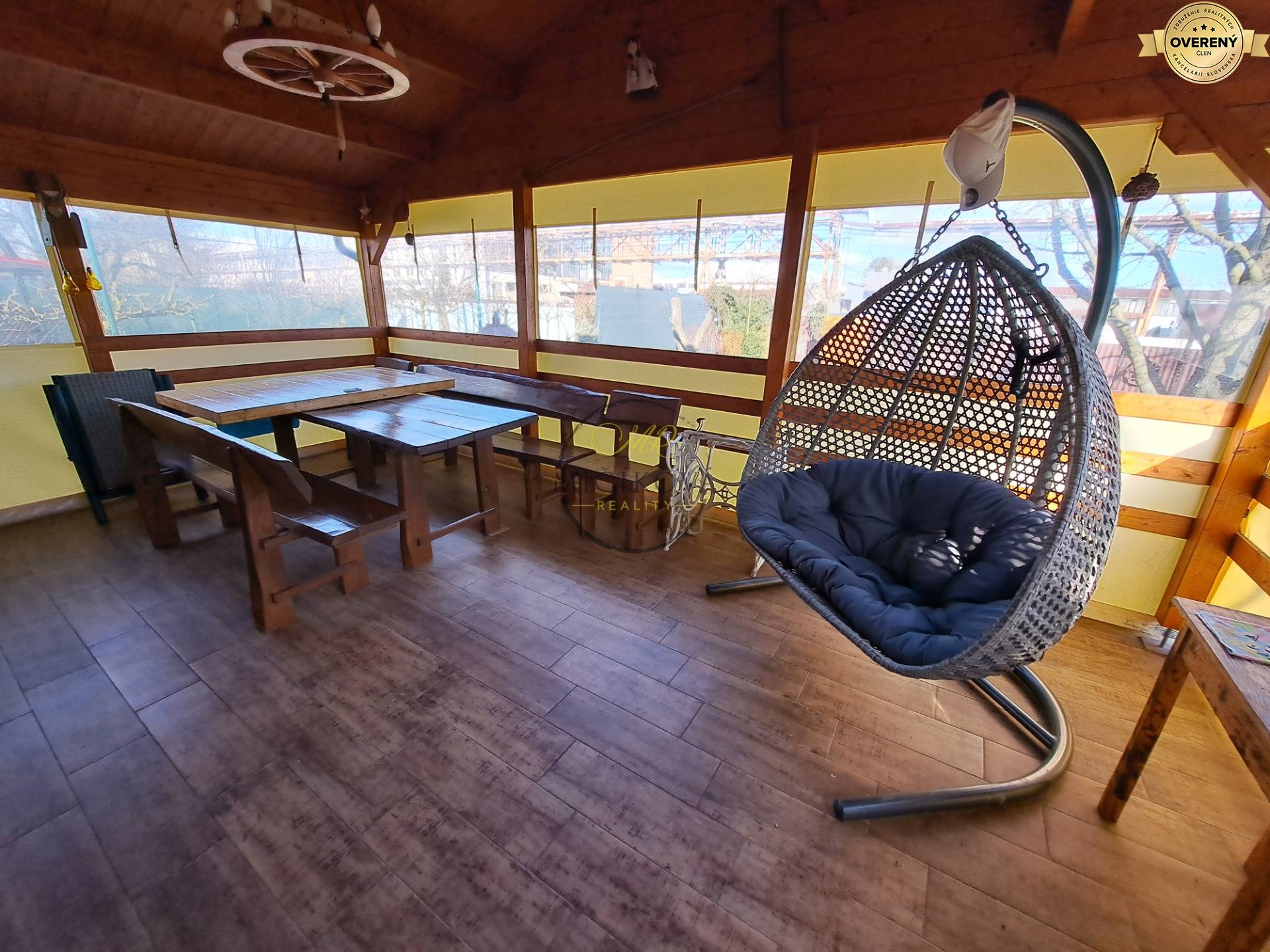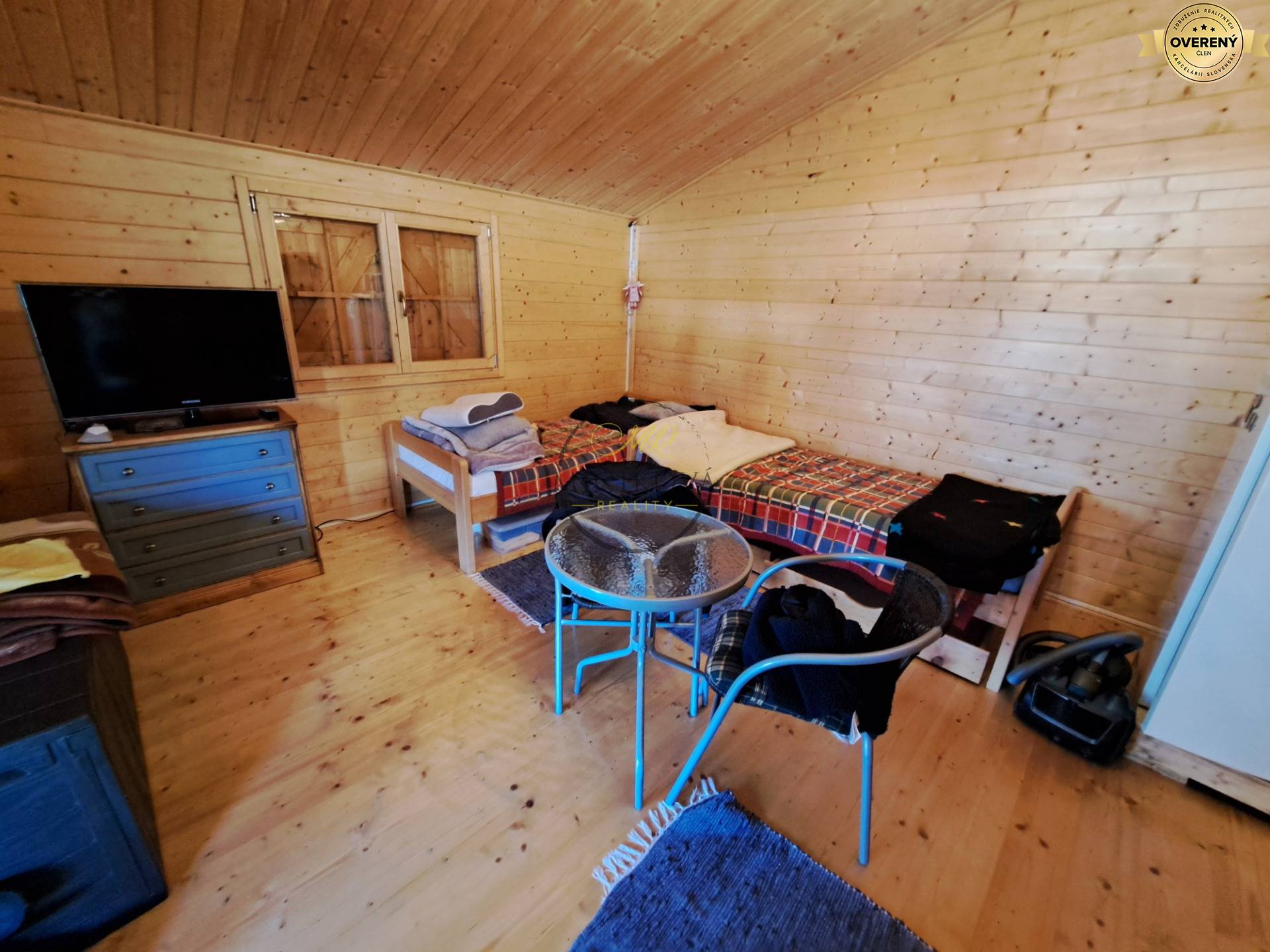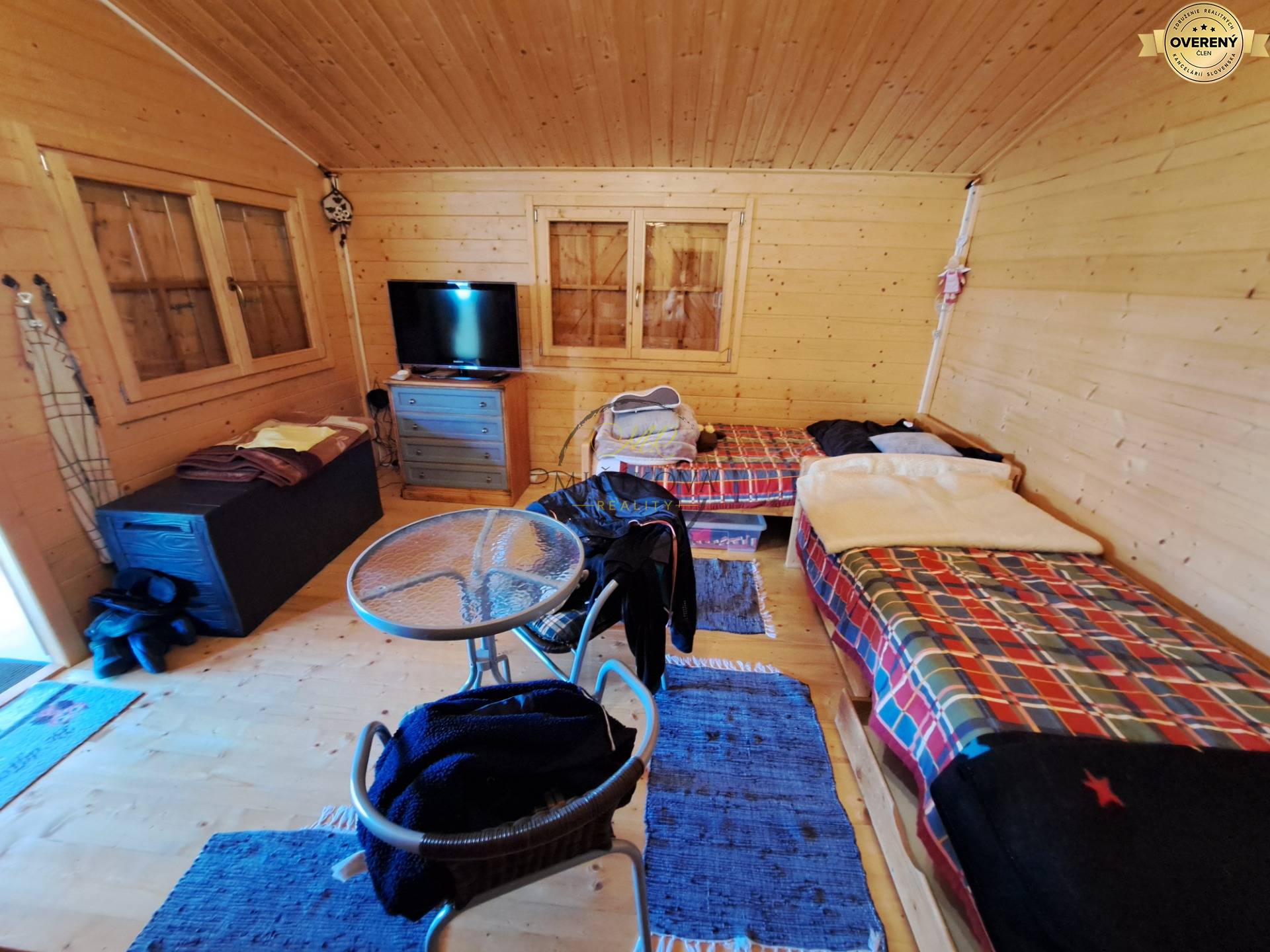 V chate je izba prepojená s funkčným kuchynským kútom, toaleta s umývadlom, pod chatou sa nachádza pivnica. Na pozemku je k dispozícii skladový priestor alebo garáž. Parkovanie pre viac áut zo zámkovej dlažby. V chate napojenie na alarm a senzor pohybu.