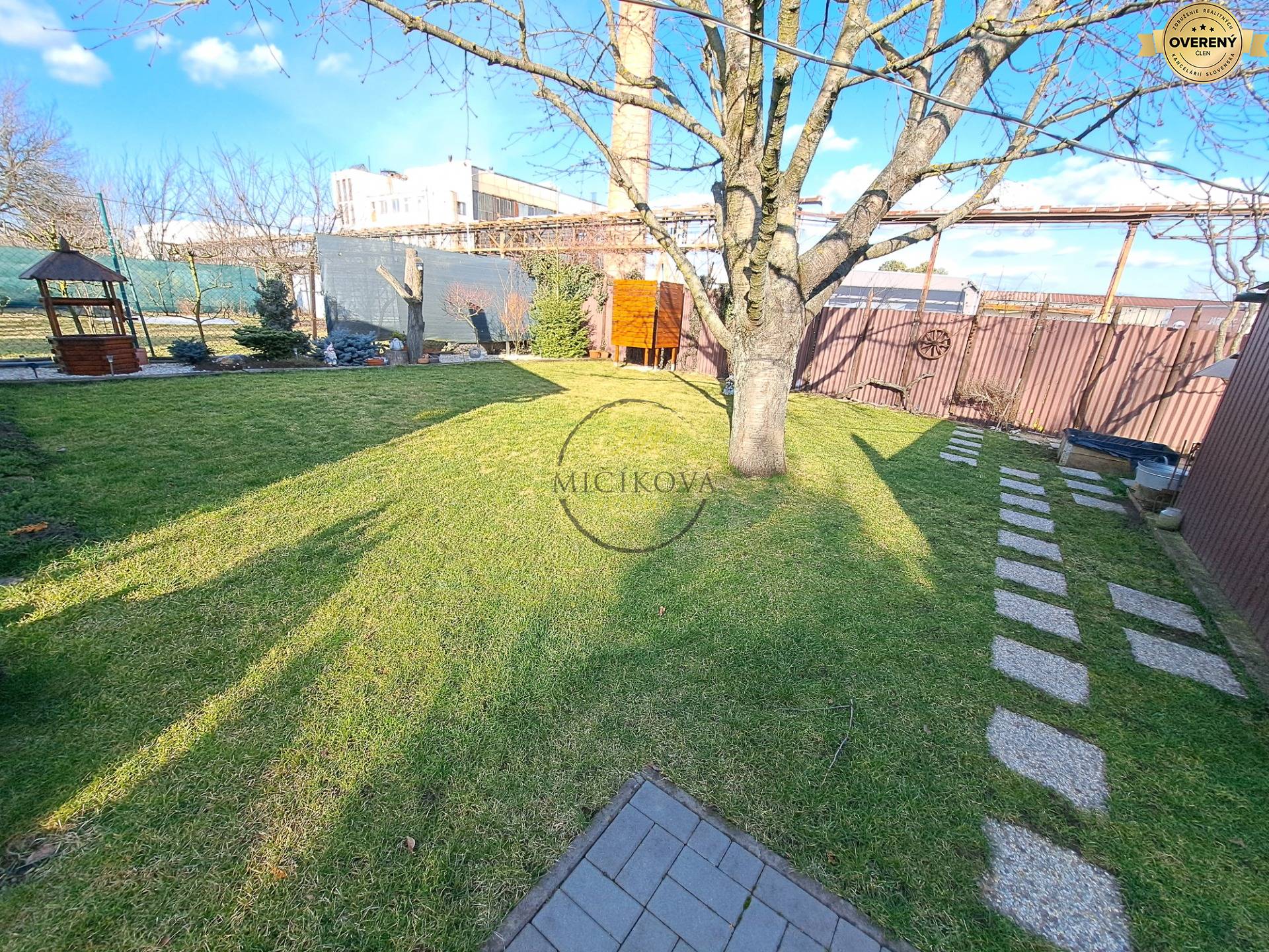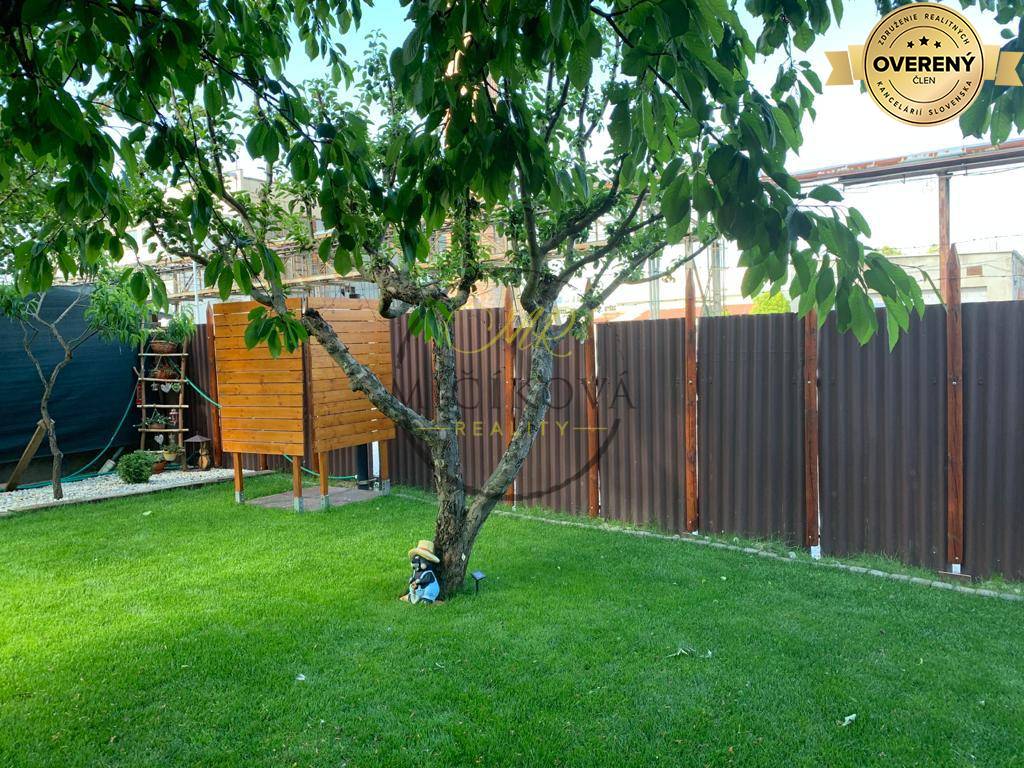 Záhrada je vysadená ovocnými stromami, kríkmi, ale aj okrasnými drevinami, je tu miesto na pestovanie vlastnej zeleniny. Milovníci grilovačiek tu nájdu dostatok priestoru na terase a na udržiavanom trávniku, kde viete umiestniť gril, ale aj väčší bazén.
