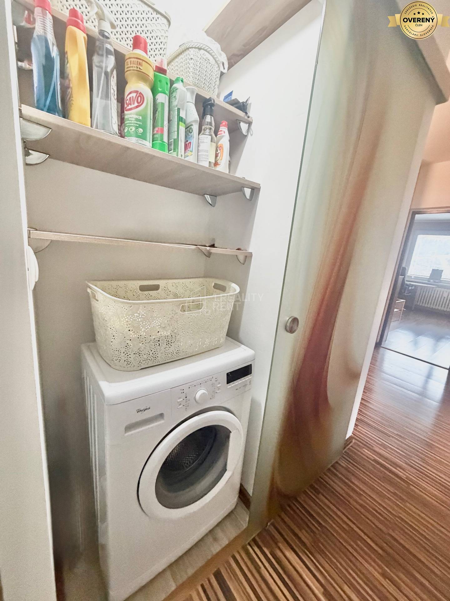 • praktický uzatvárateľný priestor pre práčku a sušičku so sklenenými dverami