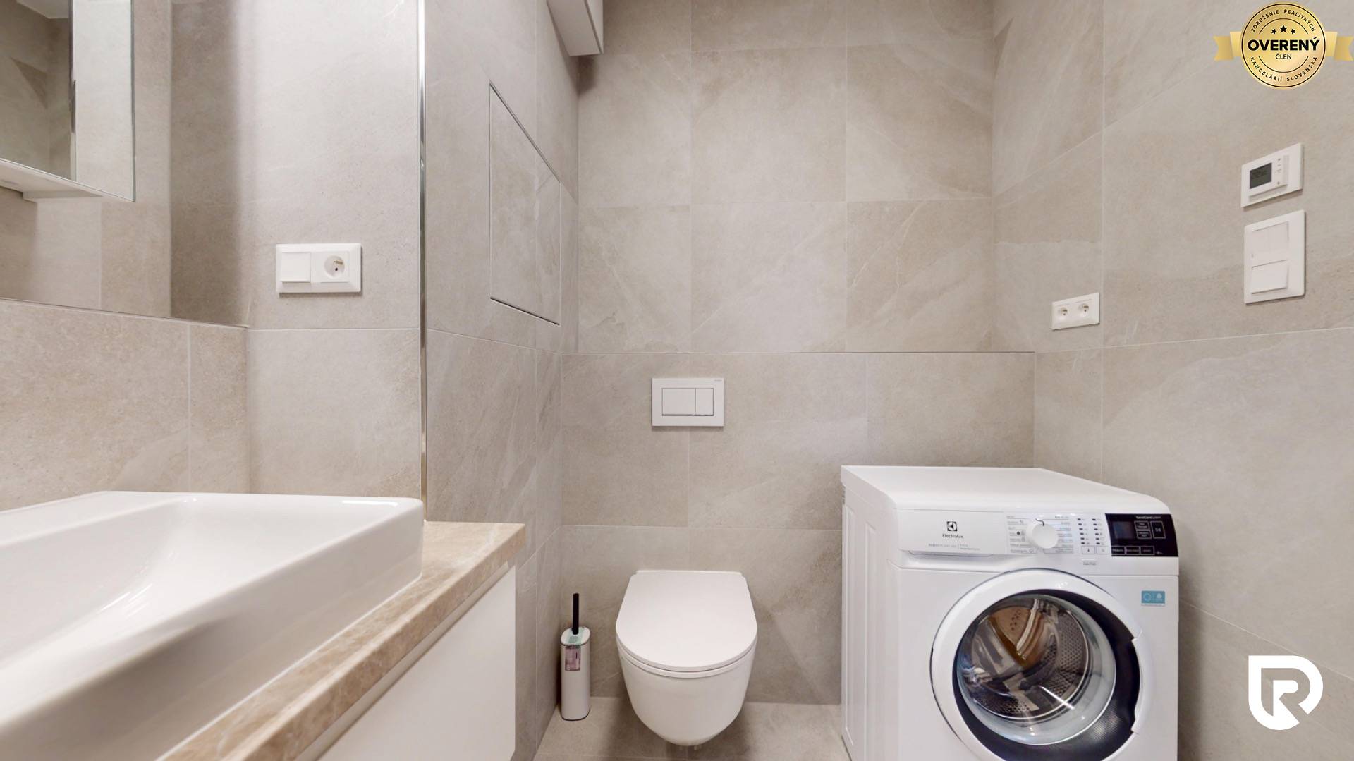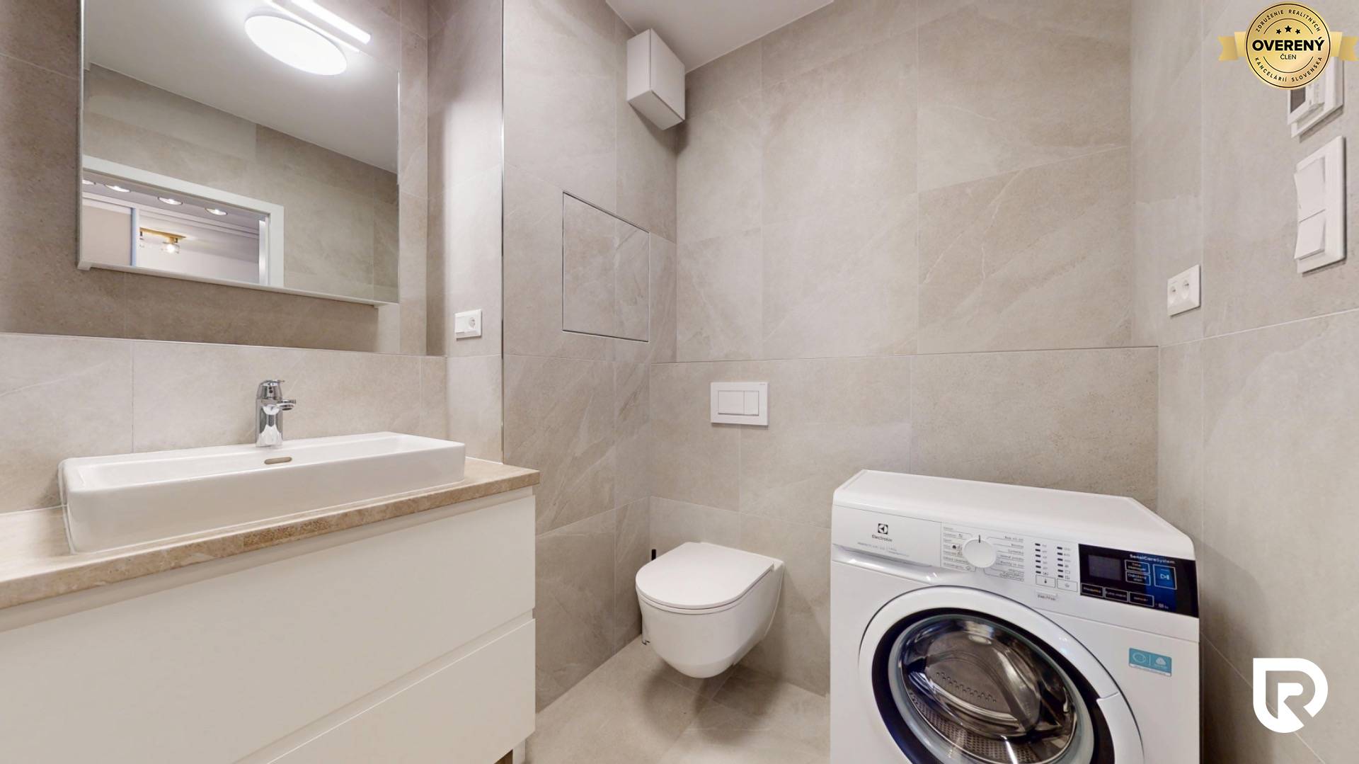 • kúpeľňa s toaletou, sprchovým kútom a práčkou